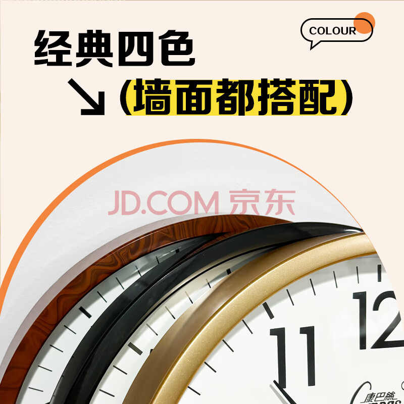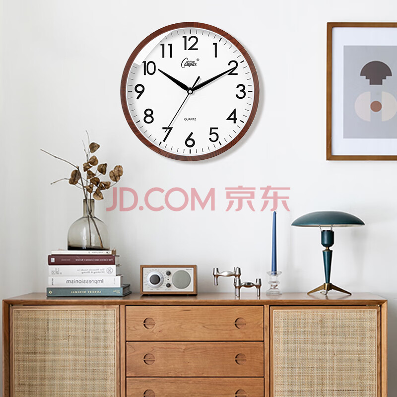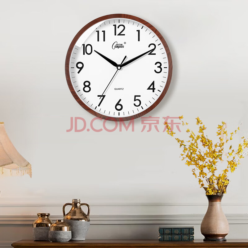 商品相册:康巴丝(Compas)挂钟客厅钟表 简约钟表客厅石英钟表挂墙时钟 c2877咖木色 33.5cm第