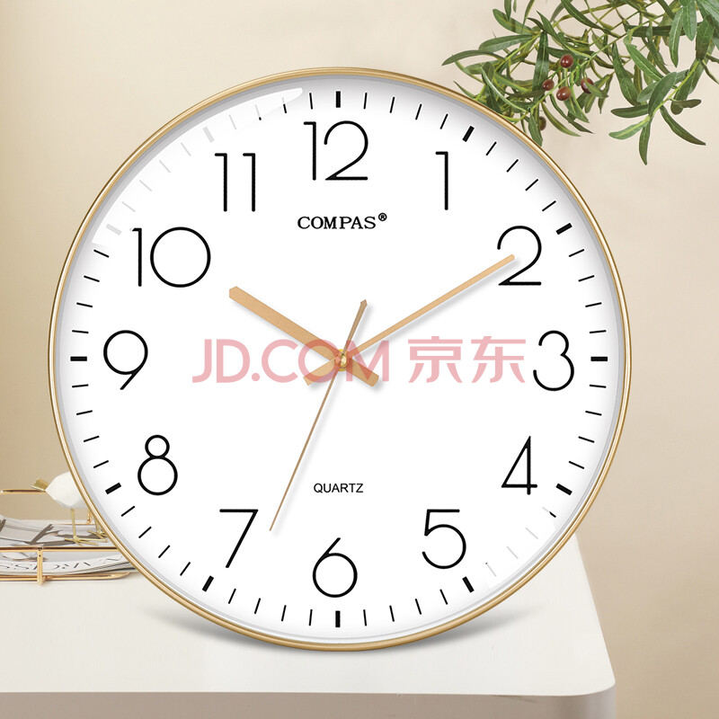 商品相册:康巴丝(Compas)挂钟客厅钟表 简约石英钟表挂墙时钟卧室挂表 C3219B轻奢金 35cm第
