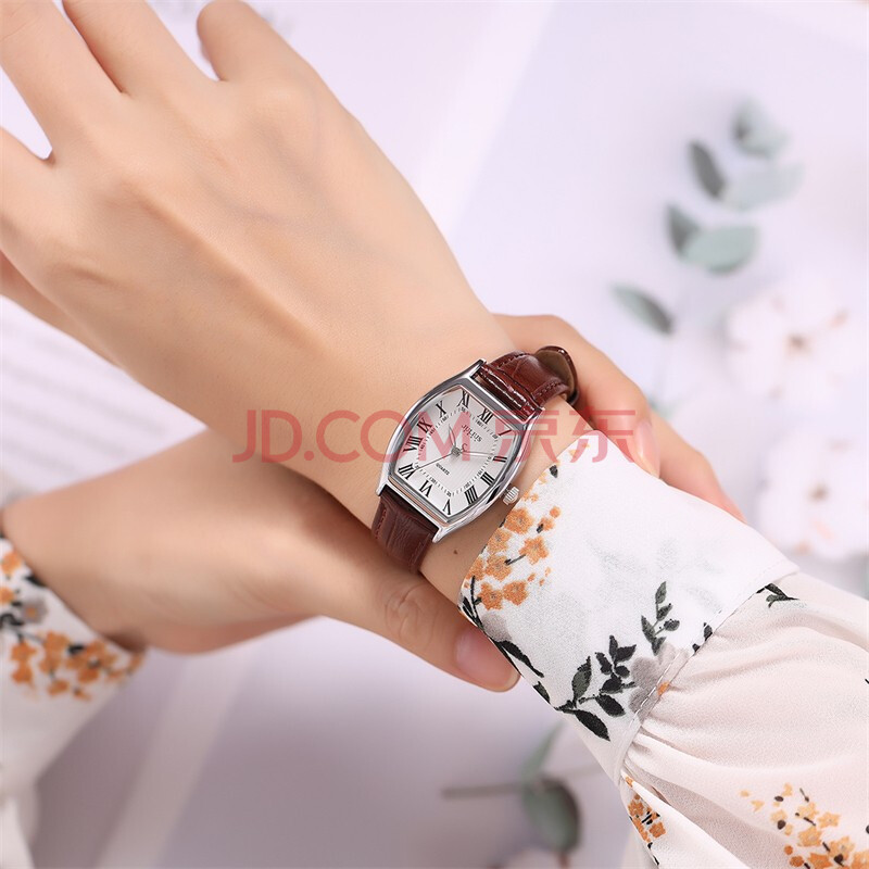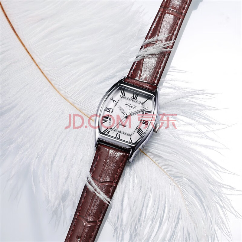 商品相册:聚利时(Julius)手表女学生酒桶形复古石英防水时尚气质女士手表棕带银壳JA-703A第