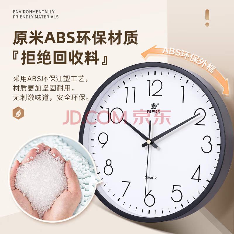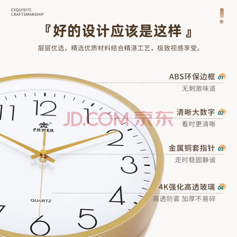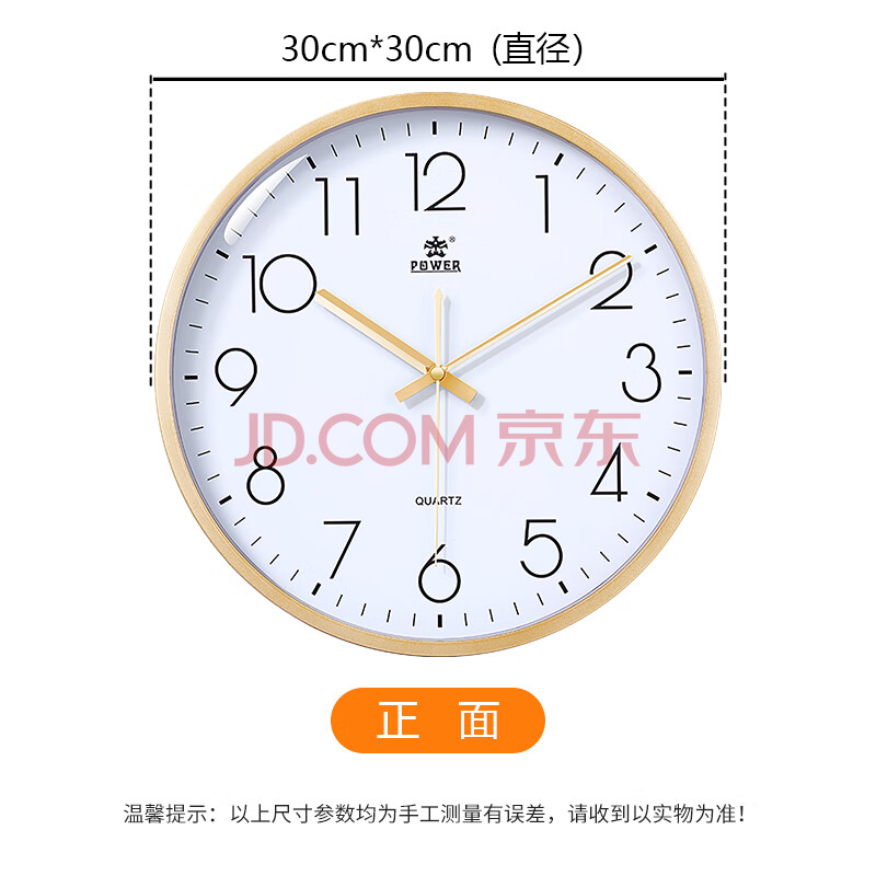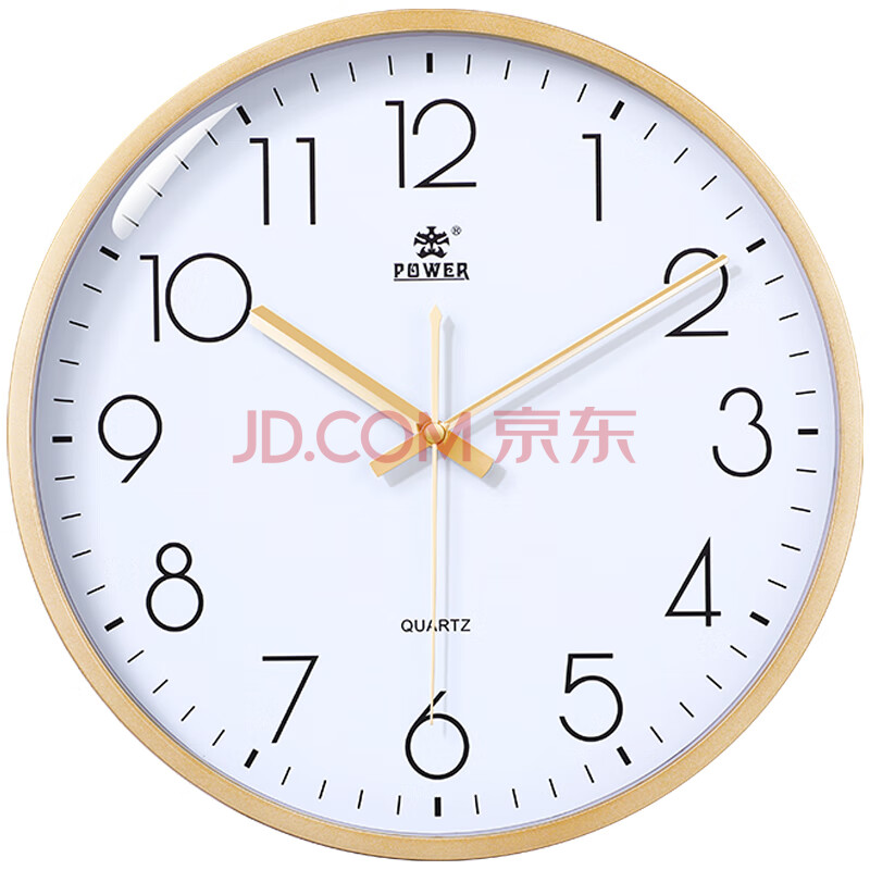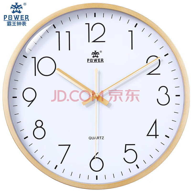 商品相册:POWER霸王挂钟表客厅经典简约挂墙免打孔时钟石英钟30cm金239518A3第