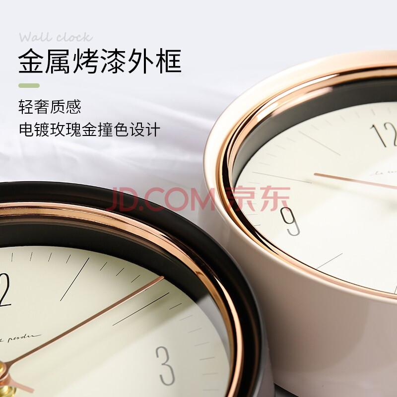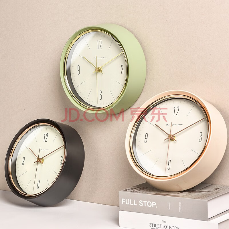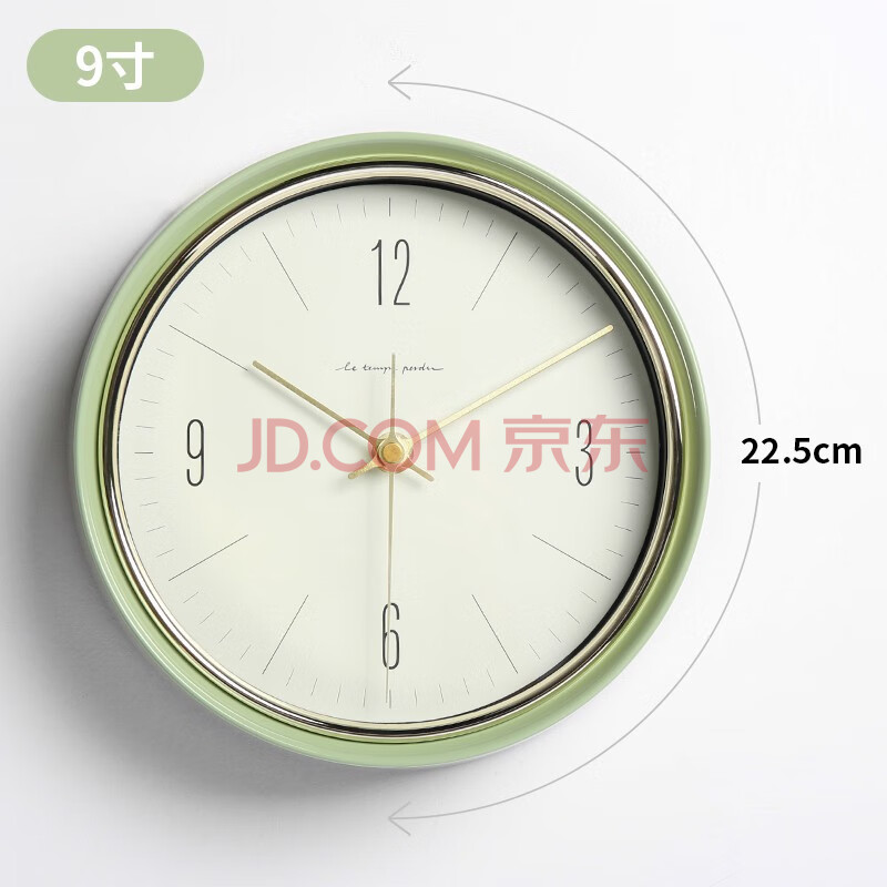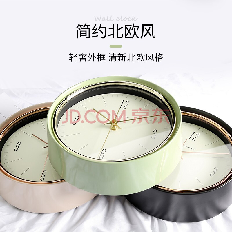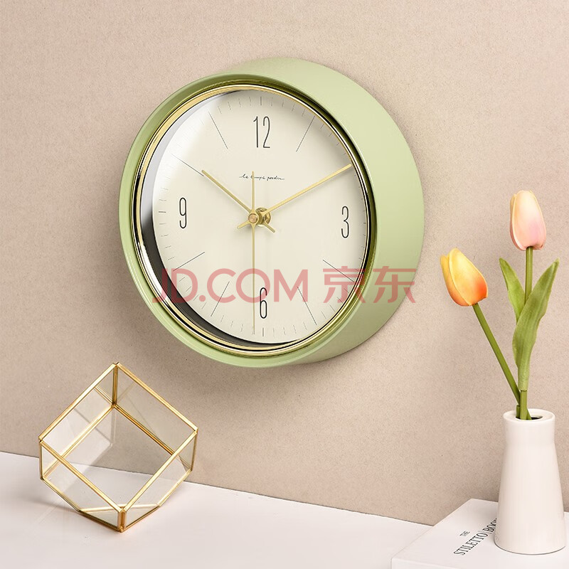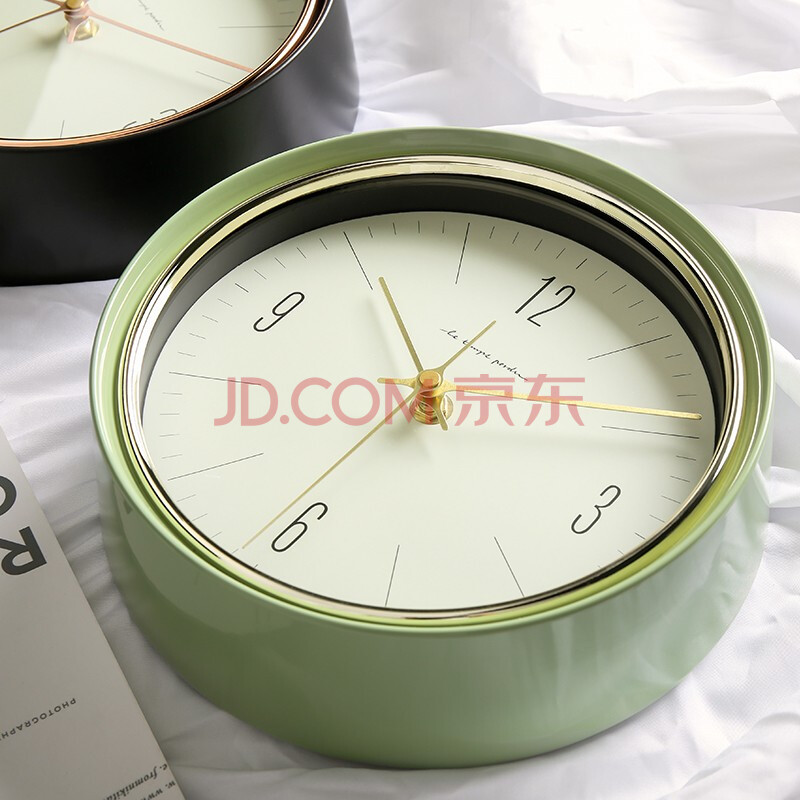 商品相册:BBA 挂钟客厅卧室家用创意欧式金属挂表免打孔挂墙时钟22.5cm橄榄绿第