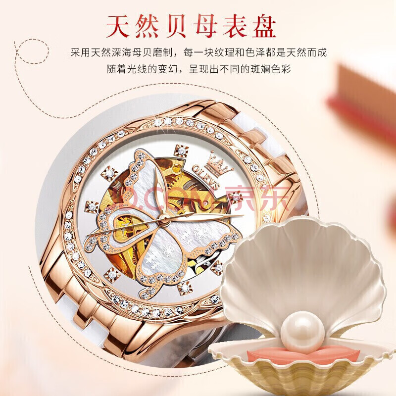 商品相册:欧利时(OLEVS)手表女士机械全自动瑞士认证品牌轻奢名表高级送生日礼物送妈妈第