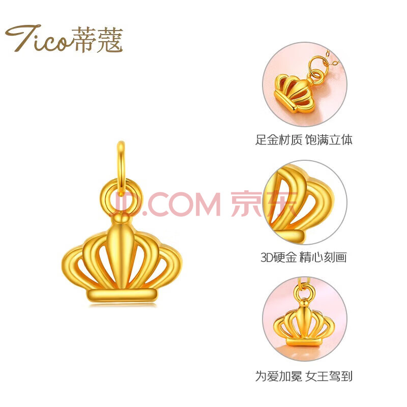 商品相册:蒂蔻(Tico)足金女神的皇冠项链黄金吊坠女5D硬金挂坠送女友老婆生日礼物第1张/共7