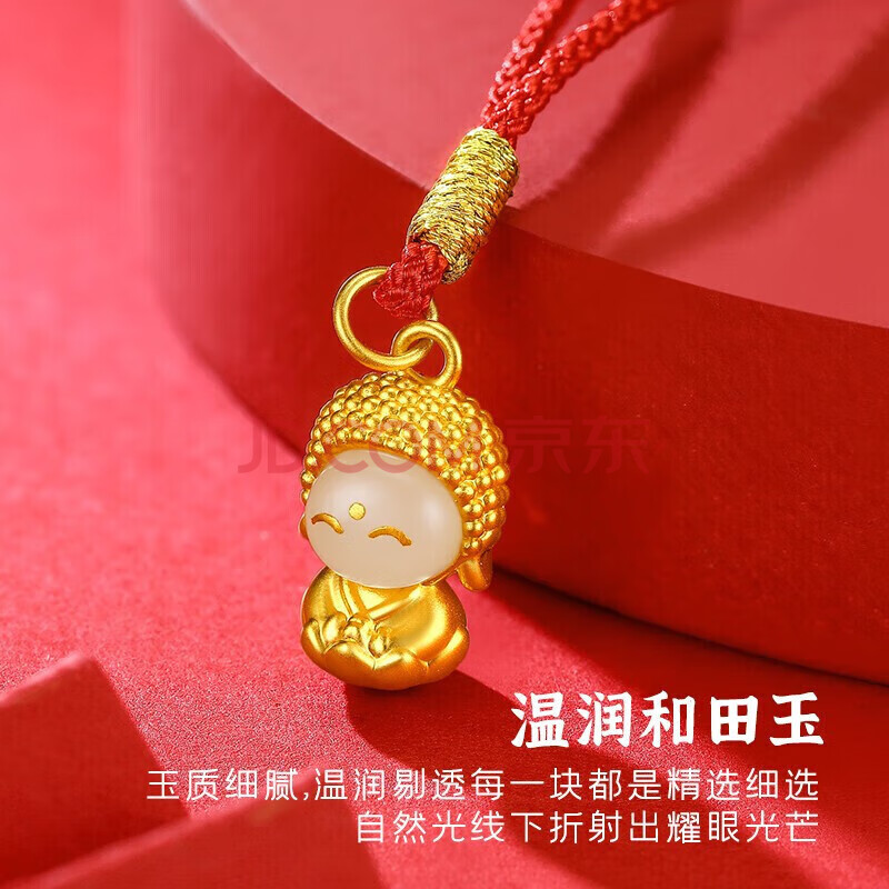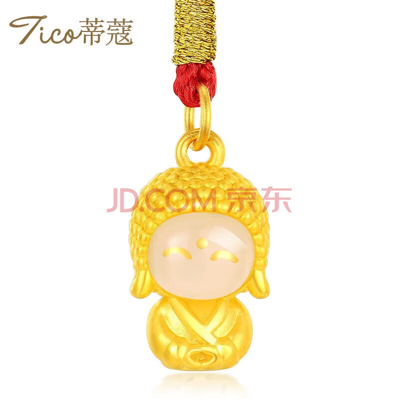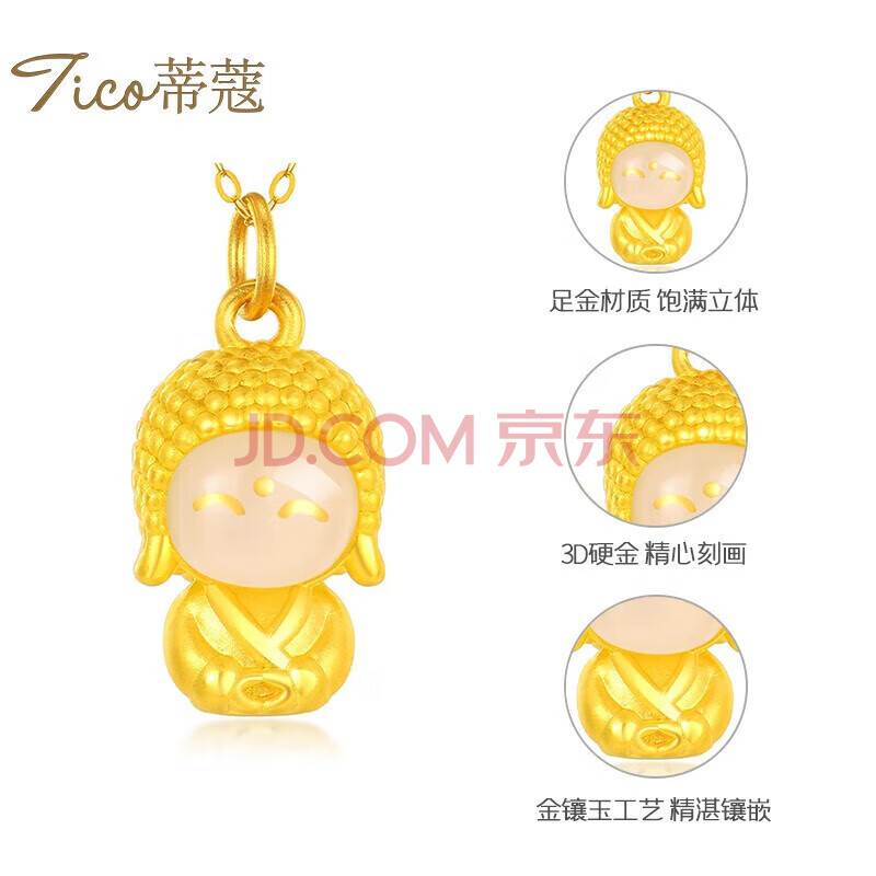 商品相册:蒂蔻(Tico)吉祥如意足金开心佛黄金吊坠项链女3d硬金镶玉和田玉佛生日礼物第