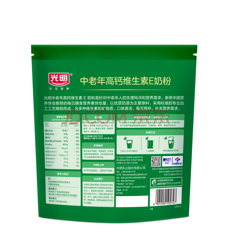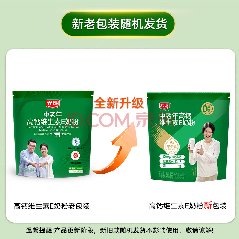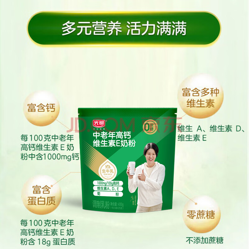 商品相册:光明中老年高钙维生素E袋装400g 0蔗糖 中老年奶粉 第