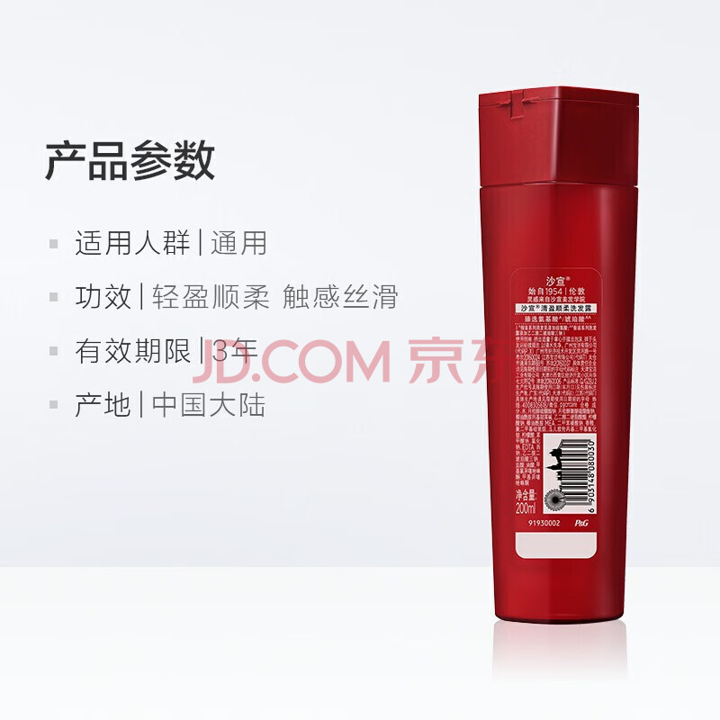 商品相册:沙宣 清盈顺柔洗发水200g/瓶第