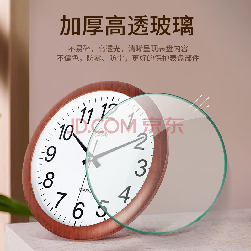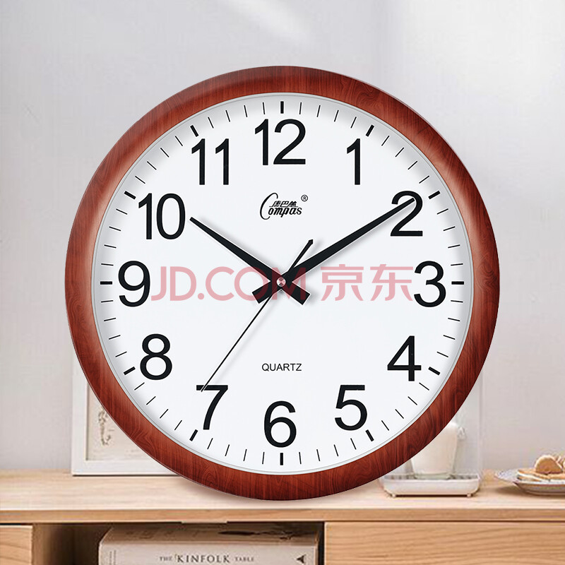 商品相册:康巴丝(Compas)挂钟 客厅钟表挂墙 现代石英时钟挂表3128 木纹色 38cm第