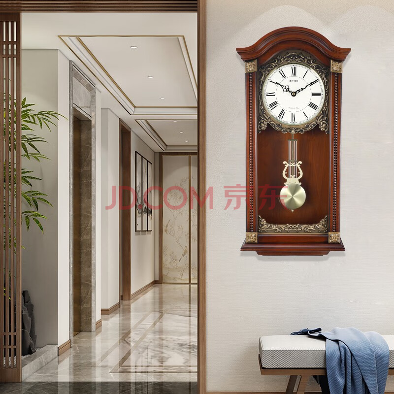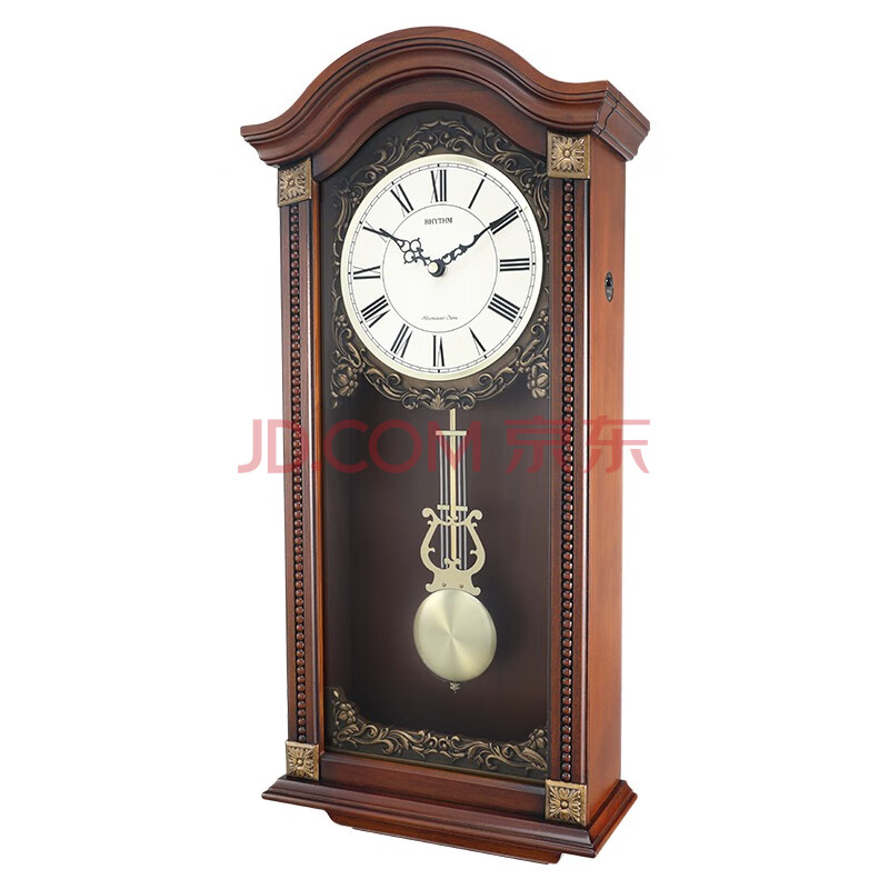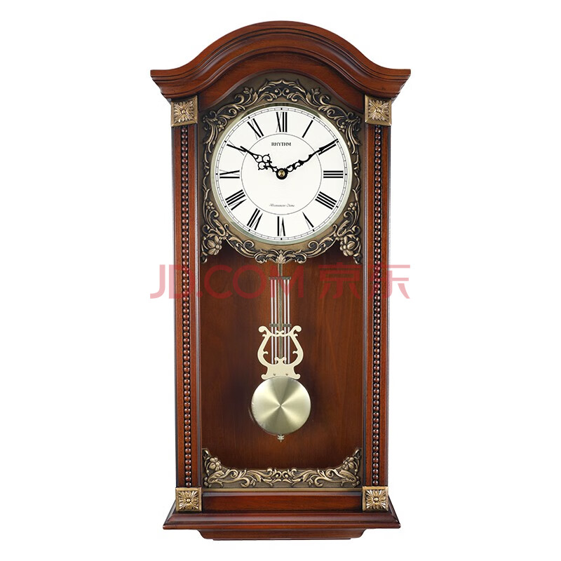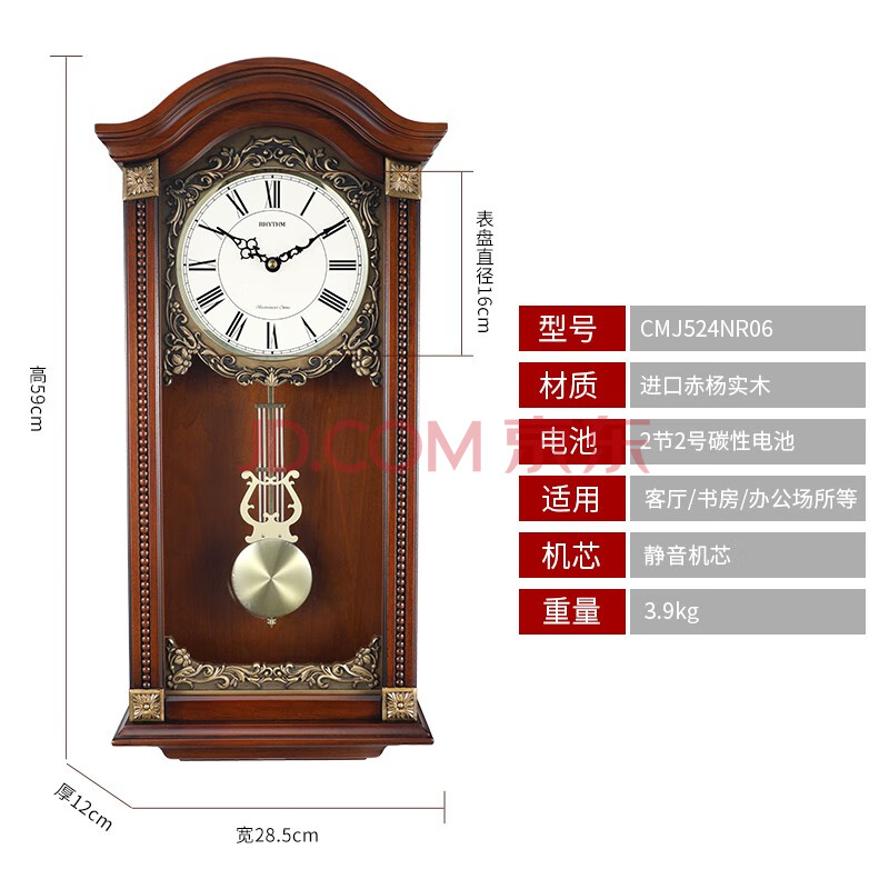 商品相册:丽声(RHYTHM)报时挂钟创意欧式挂表木制静音表挂墙客厅钟表59cm CMJ524NR06第