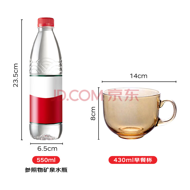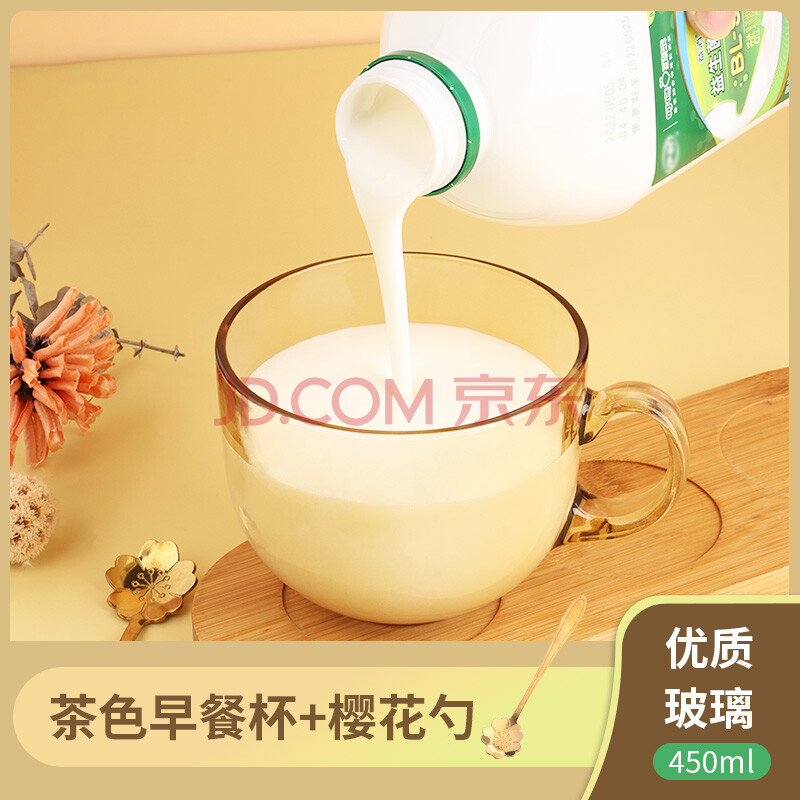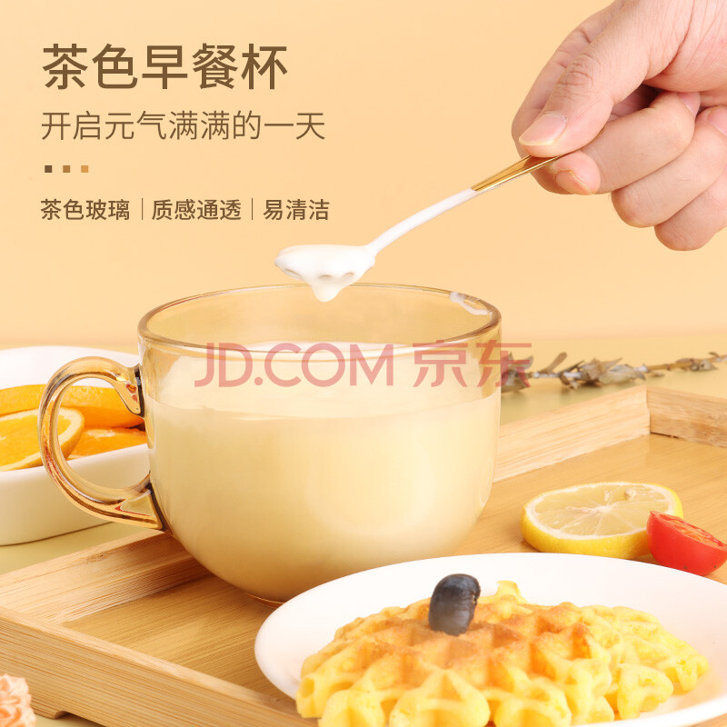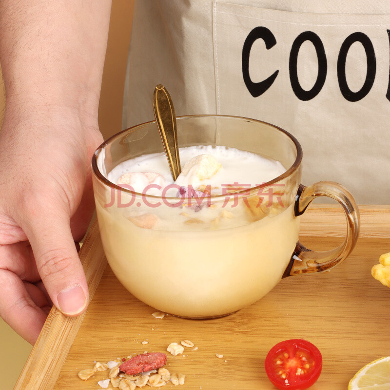 商品相册:拜杰早餐杯燕麦杯玻璃碗茶色玻璃杯杯子牛奶杯马克杯水杯带勺子430ML第
