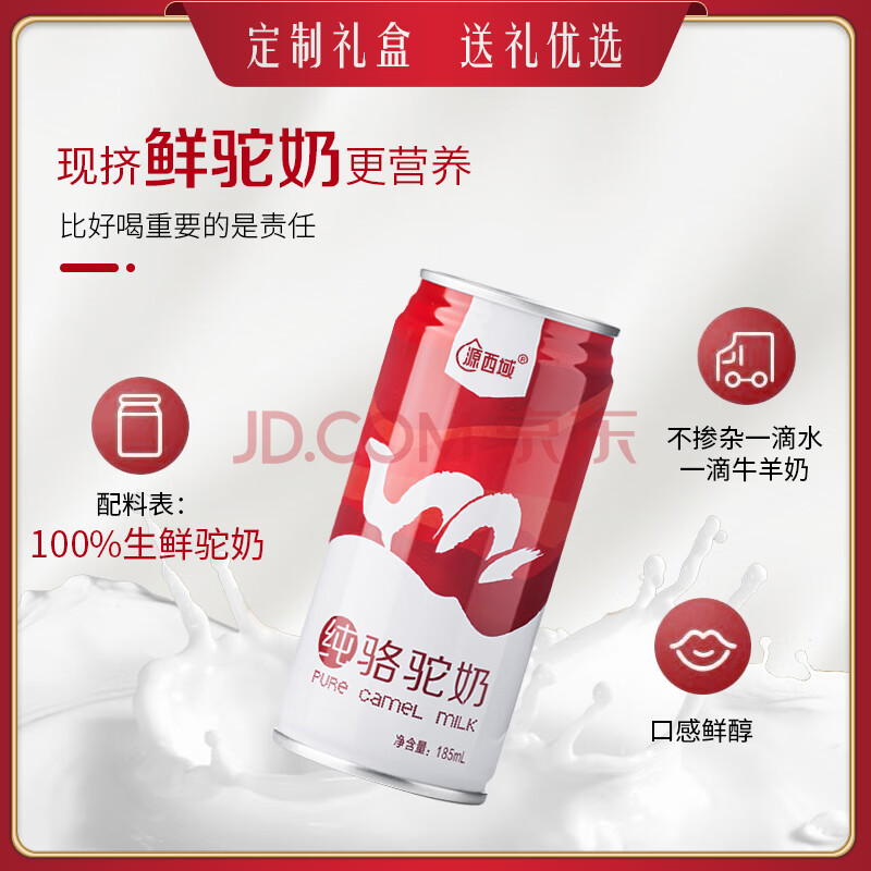 商品相册:源西域有机纯骆驼鲜奶真新疆中老年儿童成人驼奶185ml*10罐礼盒装第1张/共6