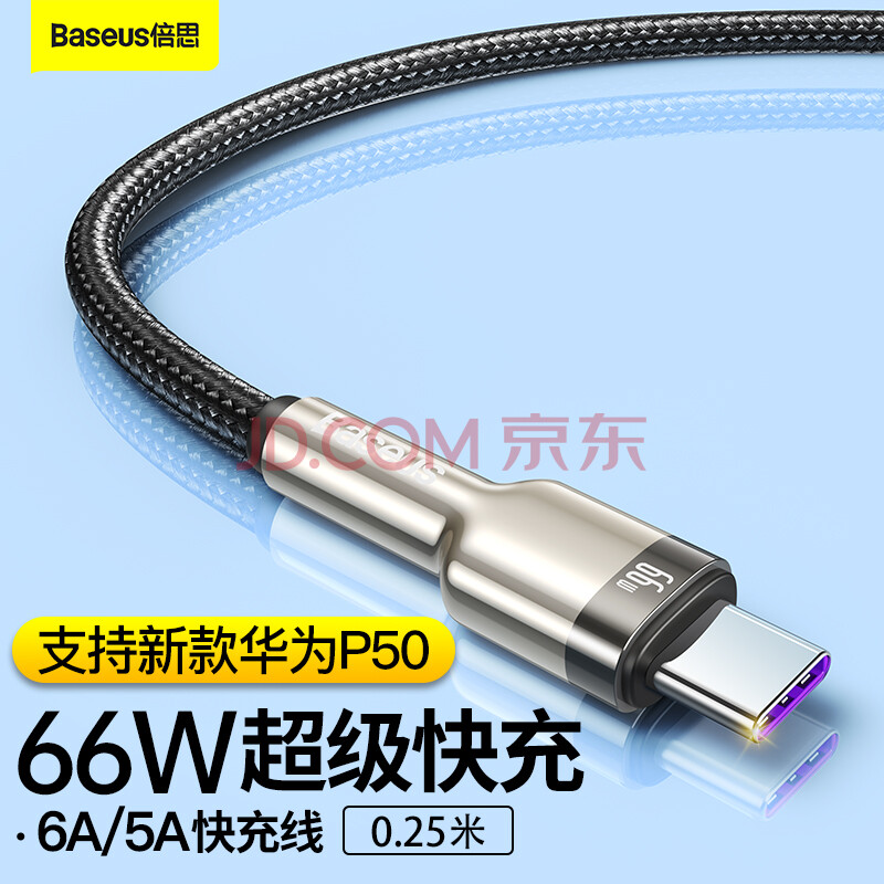 商品相册:倍思 Type-C数据线短线6A快充66w适用华为充电线mate50pro/p50/40/30荣耀70小米安卓手机 0.25米黑第