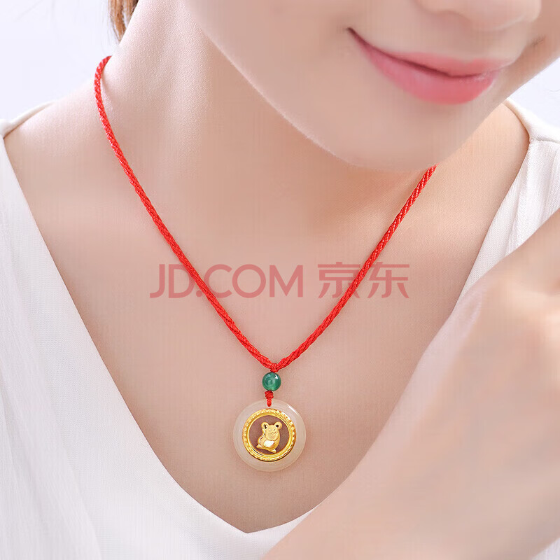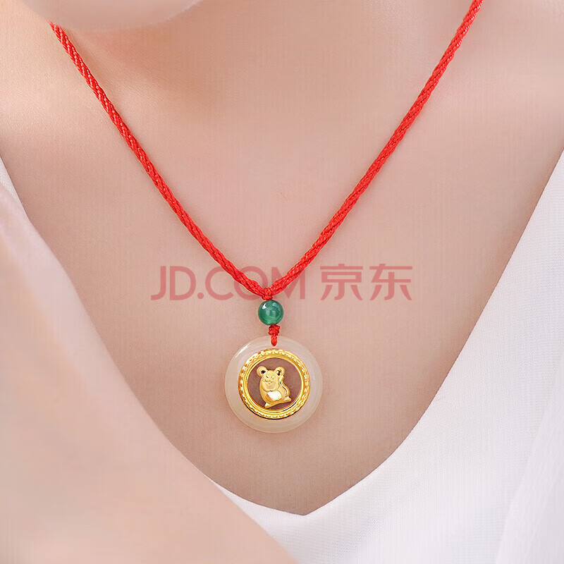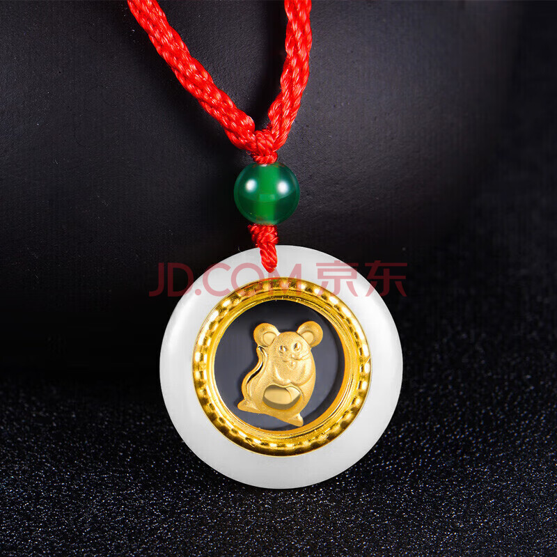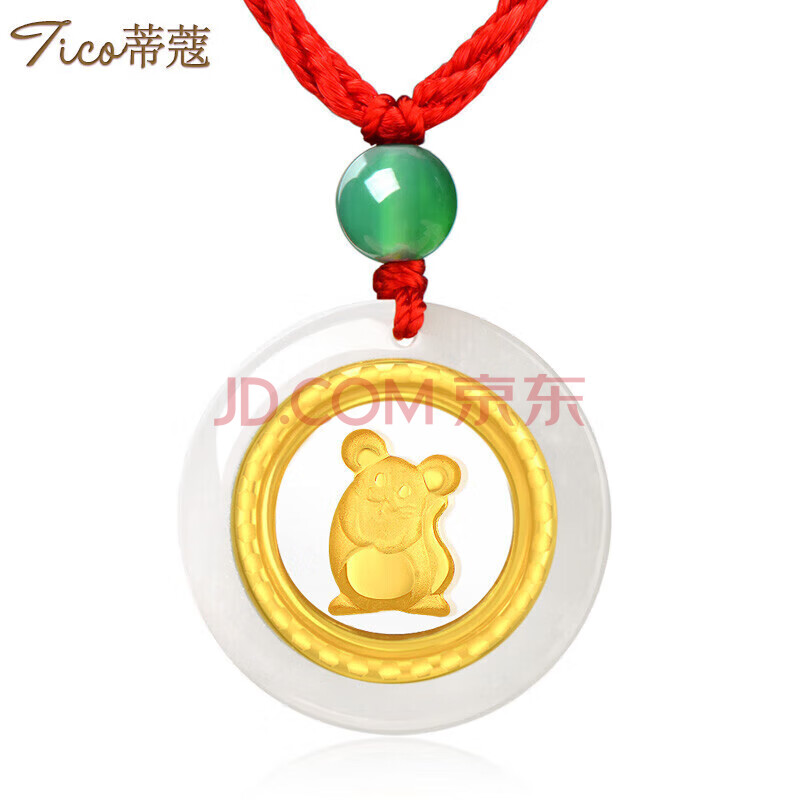 商品相册:蒂蔻(Tico)十二生肖鼠金镶玉吊坠项链男女款和田玉平安扣小孩款宝宝周岁礼物第1张/共5