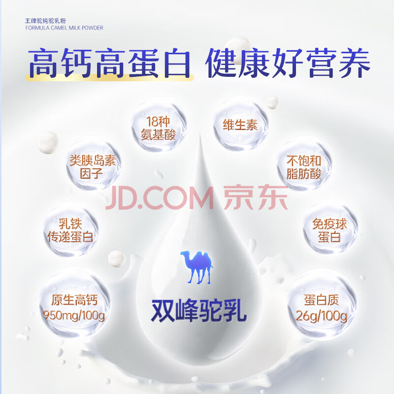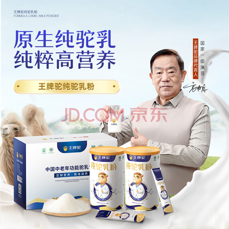 商品相册:王牌驼纯骆驼奶粉高钙中老年成人无蔗糖纯驼乳粉300克/罐送礼第