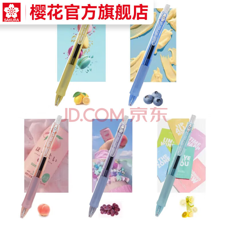 商品相册:樱花(SAKURA)按动式中性笔0.5mm 黑芯粉色杆 活力果果系列签字笔水笔学生文具马卡龙五色可选第