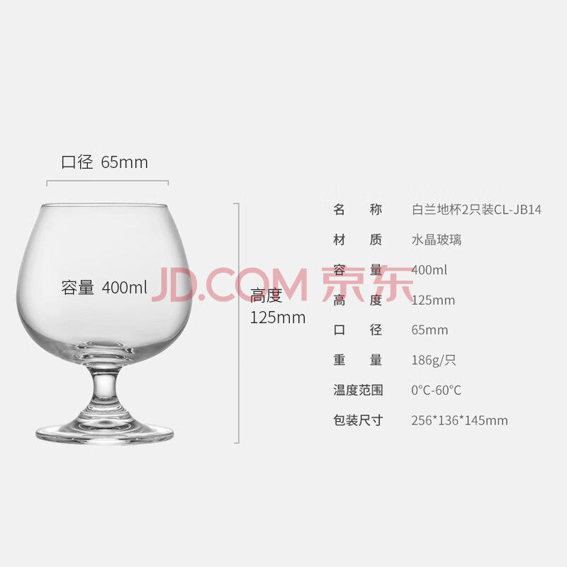 商品相册:CLITON白兰地杯 欧式水晶玻璃洋酒杯烈酒杯矮脚杯威士忌杯 2支装CL-JB14第