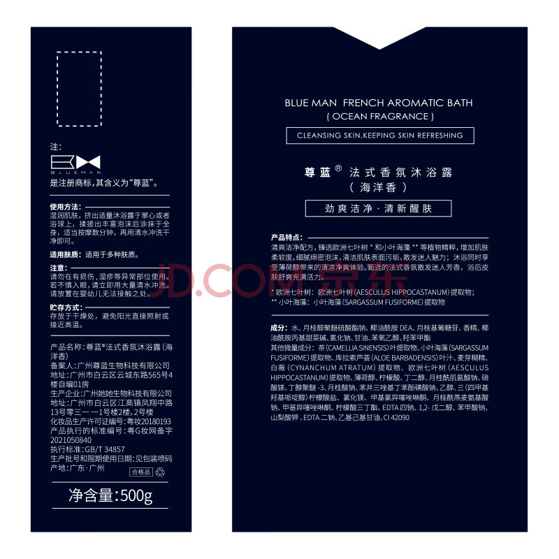 商品相册:尊蓝男士专用海洋香水沐浴露500g(香味持久留香控油氨基酸沐浴液)第