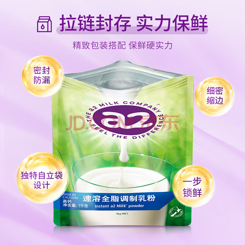 商品相册:a2全脂奶粉1kg 新西兰进口成人学生高钙高蛋白无蔗糖好吸收奶粉送礼第