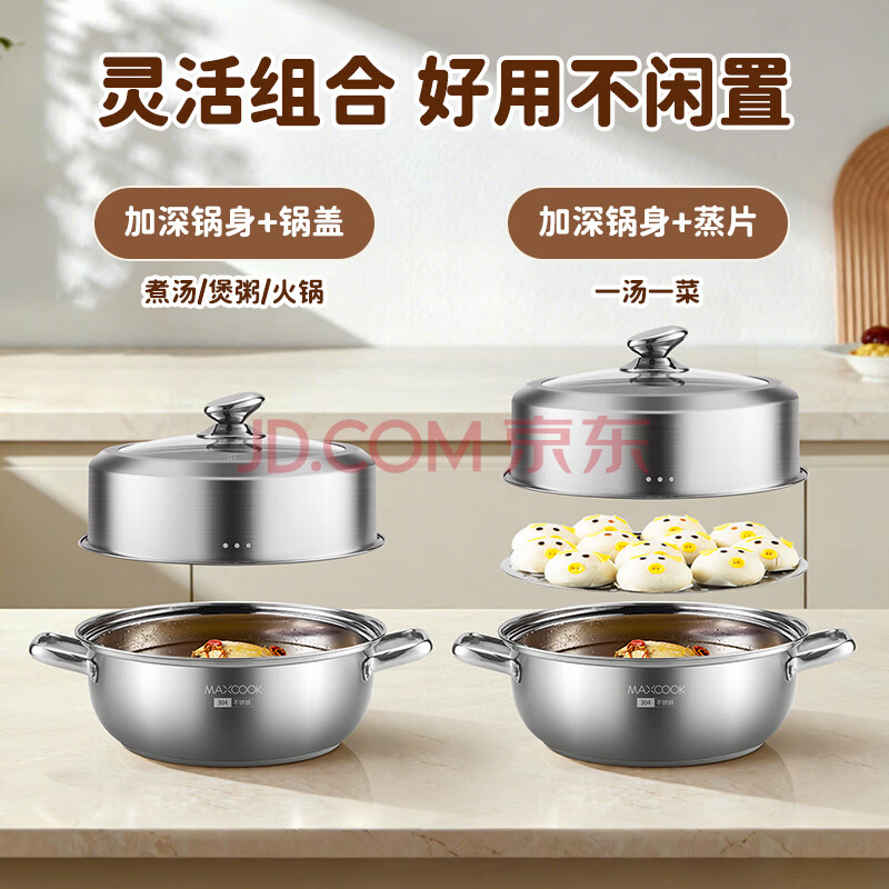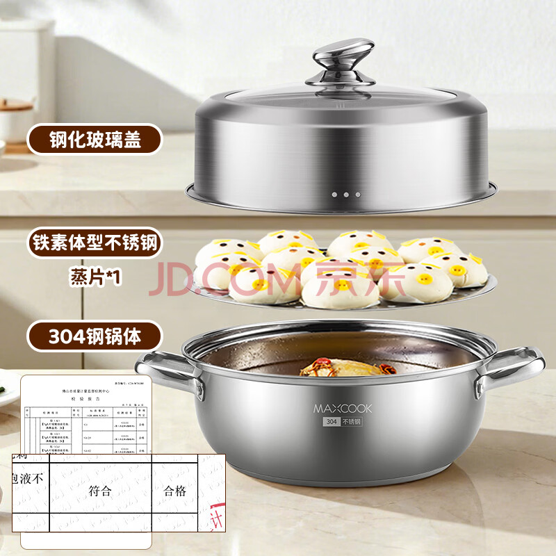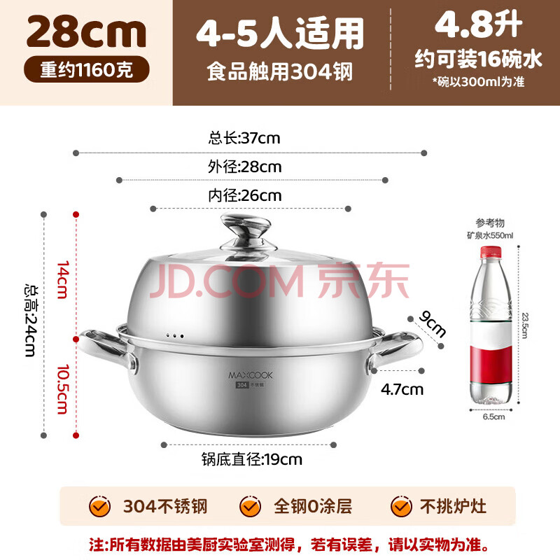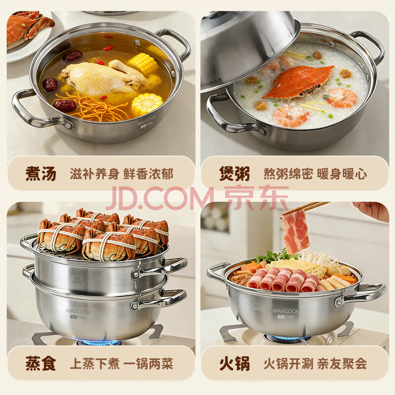 商品相册:美厨(maxcook)蒸锅汤锅火锅 304不锈钢28cm单层汤蒸锅 加厚复底汤蒸锅第