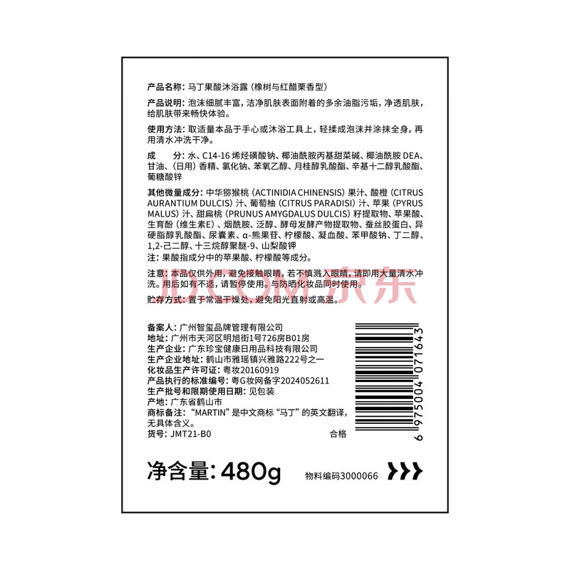 商品相册:马丁沐浴露 果酸沐浴液 男士去角质清洁淋浴露京东自营480g第