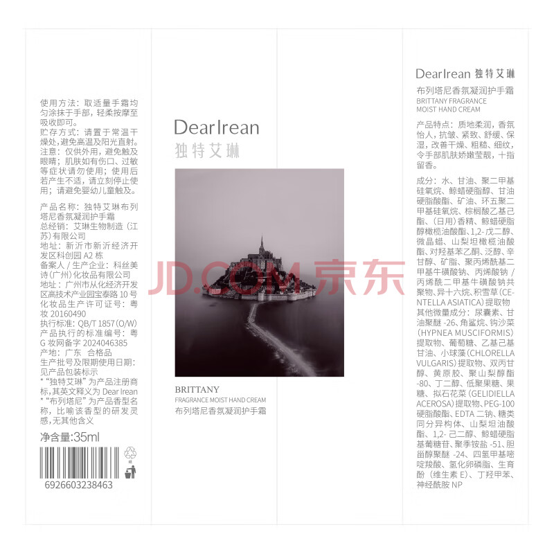 商品相册:独特艾琳(Dear lrean)侯明昊同款香氛凝润护手霜滋润保湿清爽不腻润肤布列塔尼35ml第
