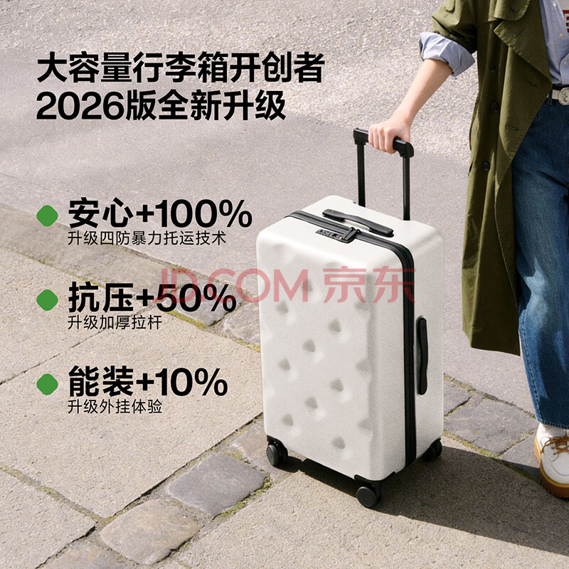 商品相册:不莱玫行李箱拉杆箱旅行箱子大容量女学生男出国托运26英寸密码箱 白色第