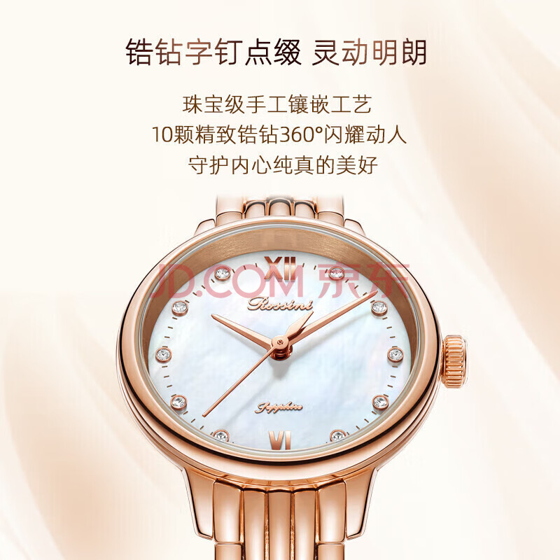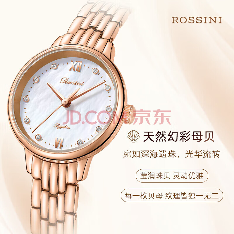 商品相册:罗西尼(ROSSINI)手表女款 生日礼物送女友时尚轻奢石英表贝母白盘钢带5220118第