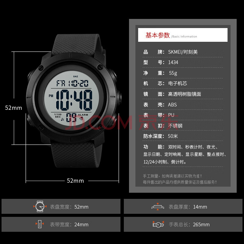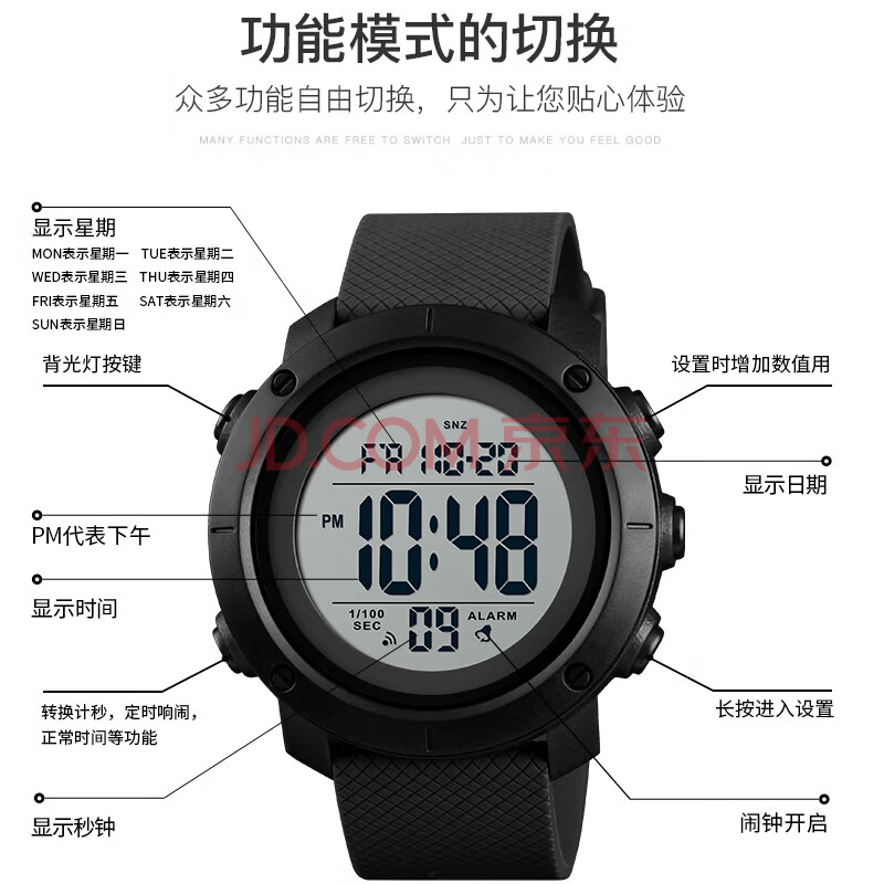 商品相册:时刻美(skmei)运动手表户外防水初高中学生当兵入伍军人专用电子表开学礼物1434第