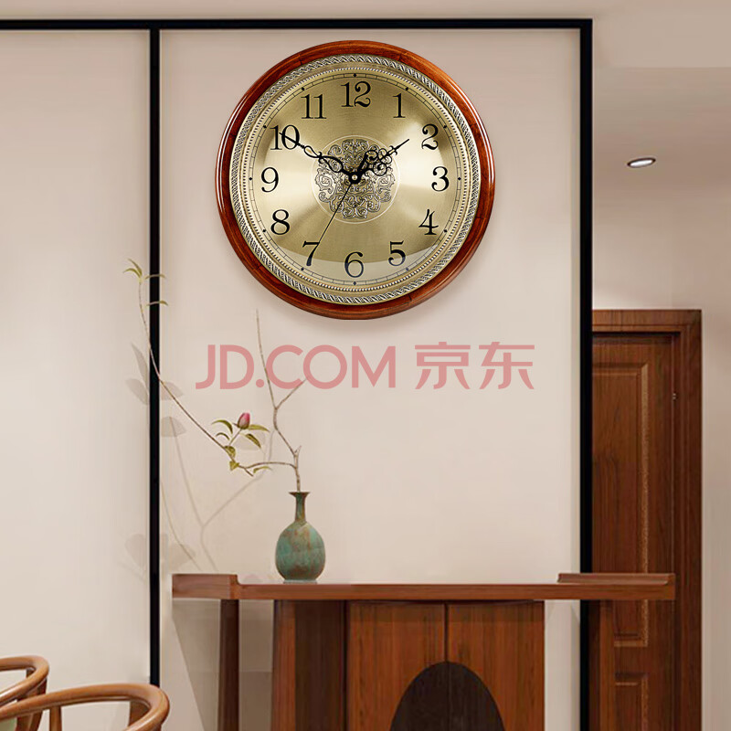 商品相册:汉时(Hense)实木挂钟轻奢大气客厅时钟挂墙挂表家用石英钟表HW38B款40.5cm第
