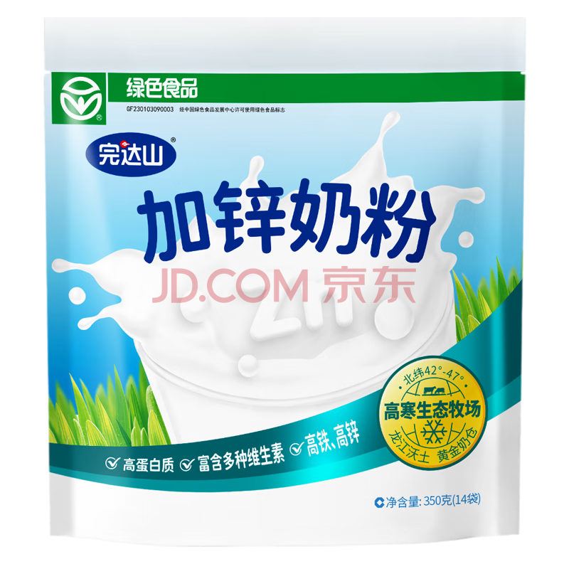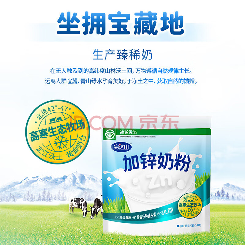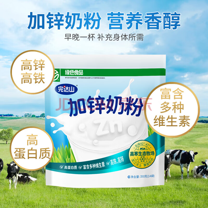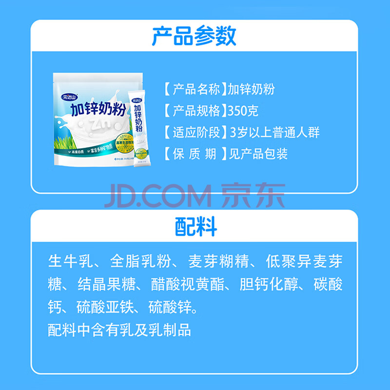 商品相册:完达山加锌奶粉生牛乳高铁高锌多维高蛋白质350g(新老包装随机发货)第