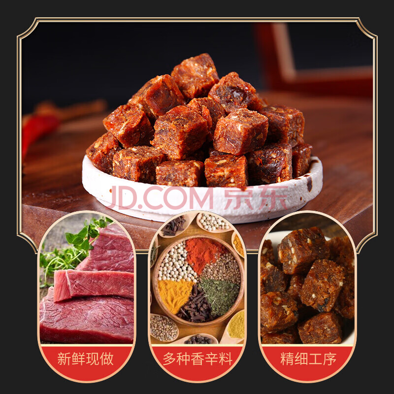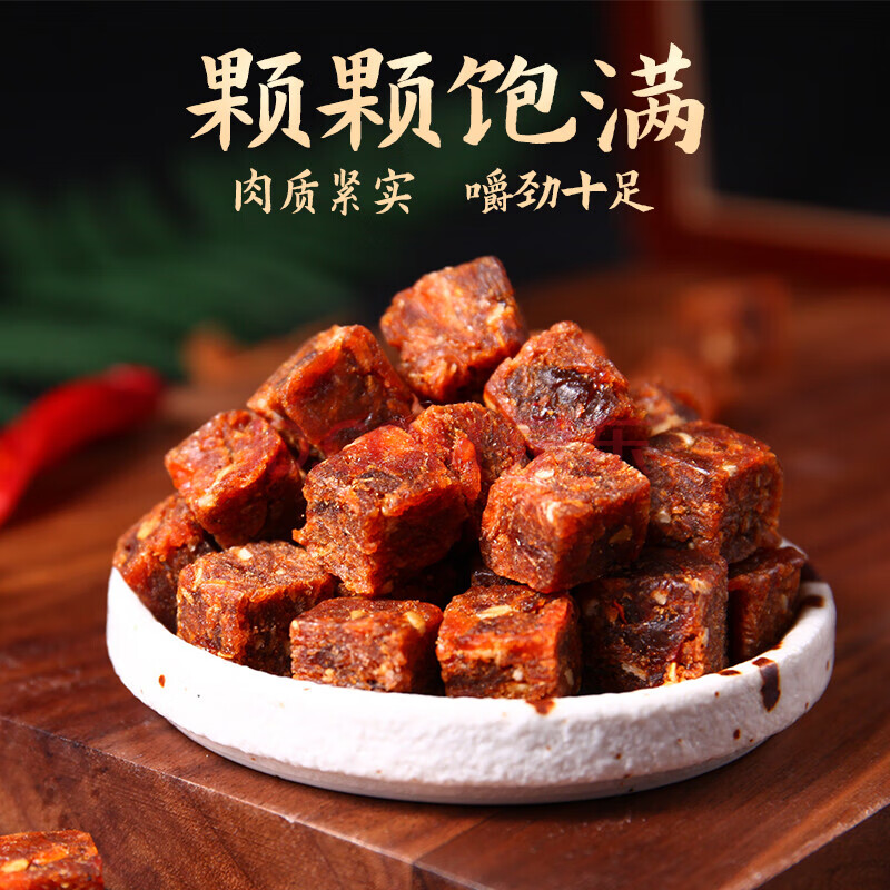 商品相册:牛嗲嗲 原切牛肉粒500g儿童牛肉干高含量肉脯独立小包装休闲零食香辣味第
