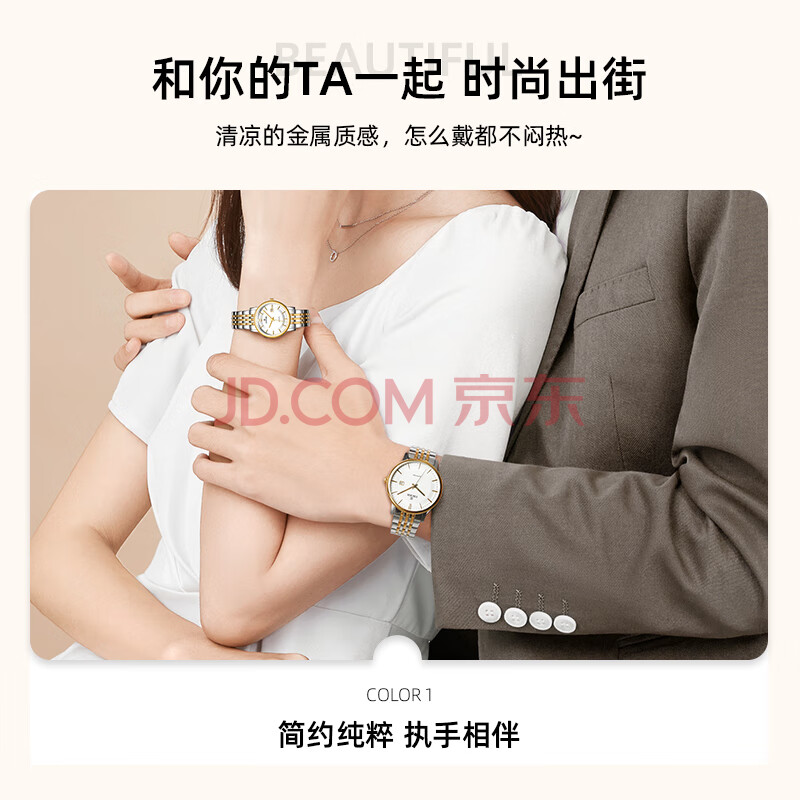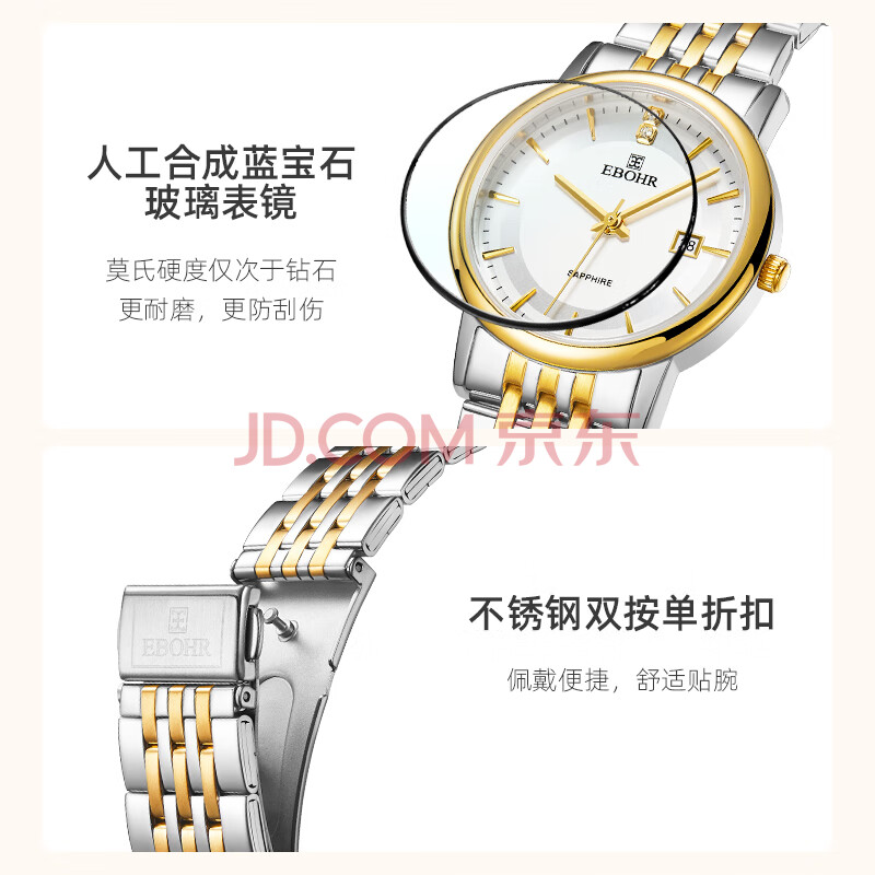 商品相册:依波(EBOHR)手表大师系列间金钢带石英情侣对表生日节日礼物56690316/323第
