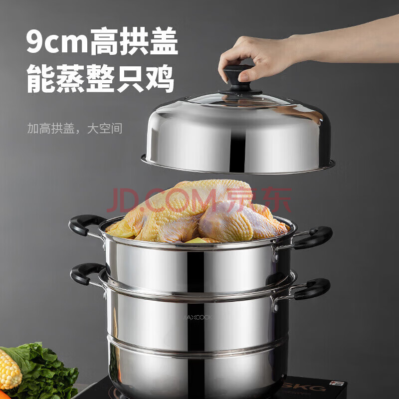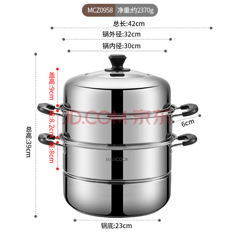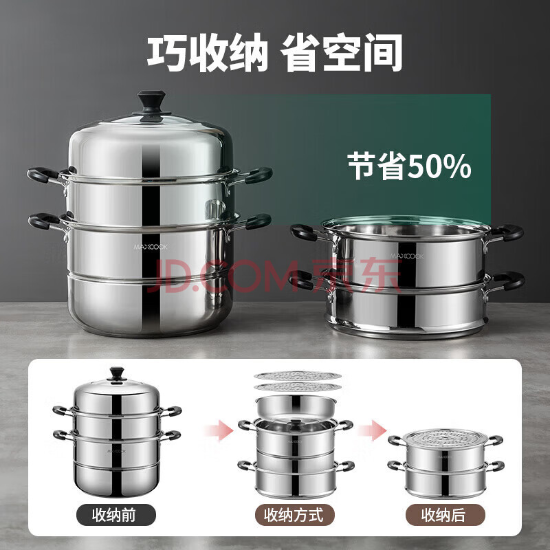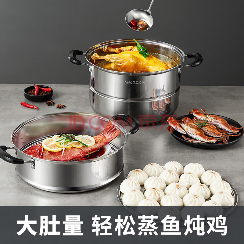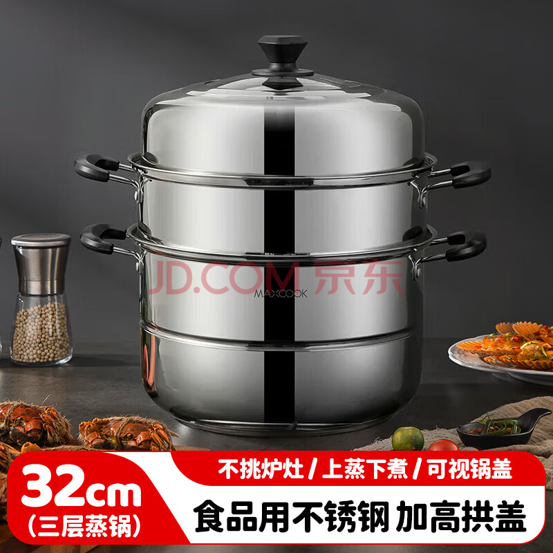商品相册:美厨(maxcook)蒸锅 不锈钢32CM三层蒸锅 加厚复底汤蒸锅 燃气电磁炉通用MCZ0958第