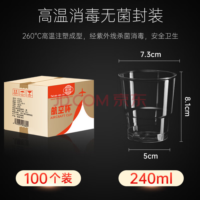 商品相册:唐宗筷 一次性航空杯240ML*100只 加厚水晶水杯茶杯啤酒饮料杯第