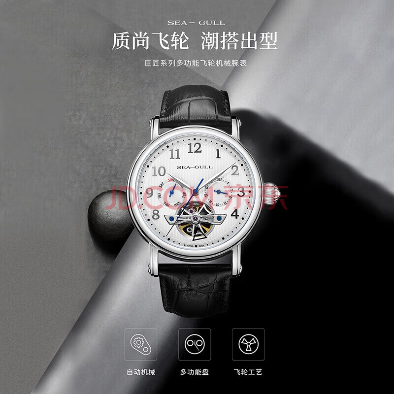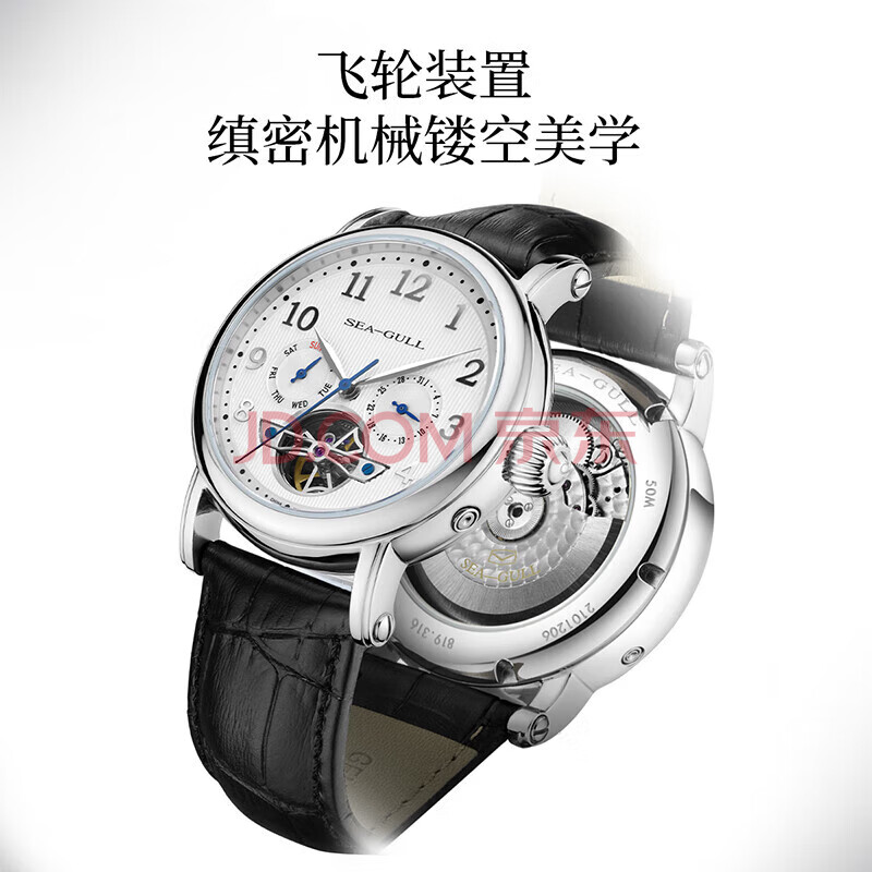 商品相册:海鸥(SEAGULL)手表男士自动机械表 日历星期镂空飞轮男士手表生日礼物男表6123第