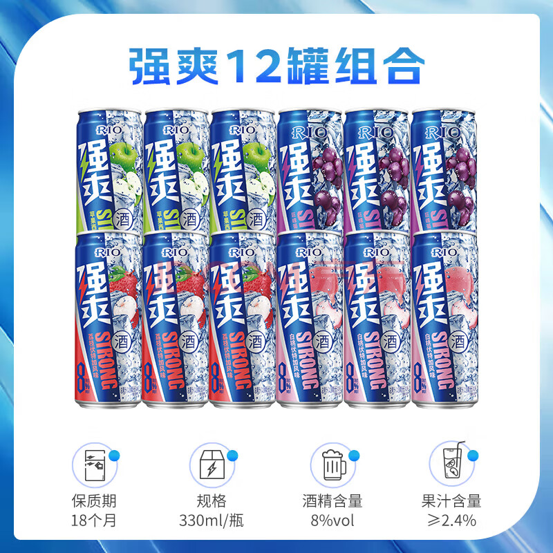 商品相册:锐澳(RIO)洋酒 预调酒 鸡尾酒 果酒甜酒伏特加 强爽8度系列 330ml*12罐 第