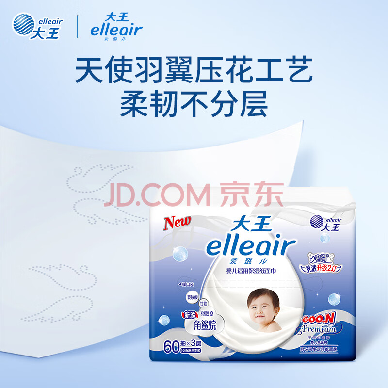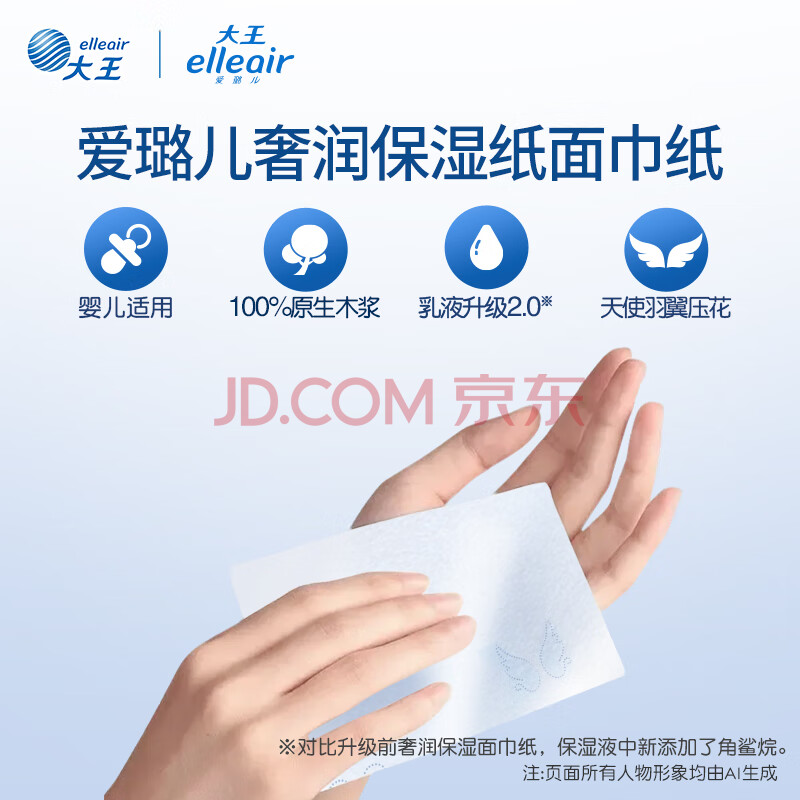 商品相册:elleair大王奢润抽纸100抽*18包整箱宝宝亲肤乳霜纸保湿卫生云柔纸餐巾纸第