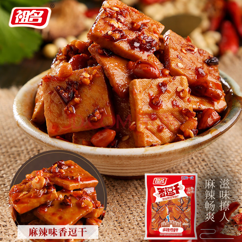 商品相册:祖名 香豆干混合口味256g 解馋豆干素食小包装高蛋白休闲零食下酒菜第