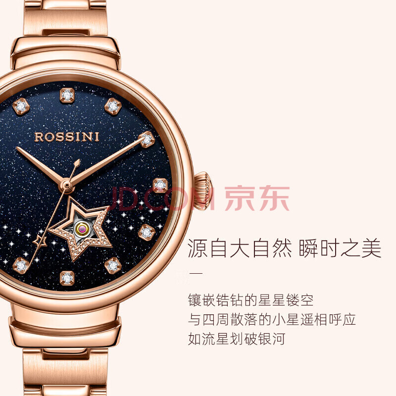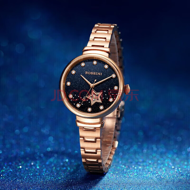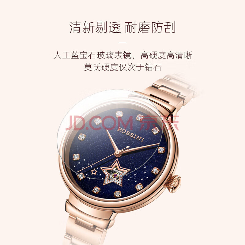 商品相册:罗西尼(ROSSINI)手表女自动机械表蓝盘钢带生日礼物送女友国表气质镂空 5210060第