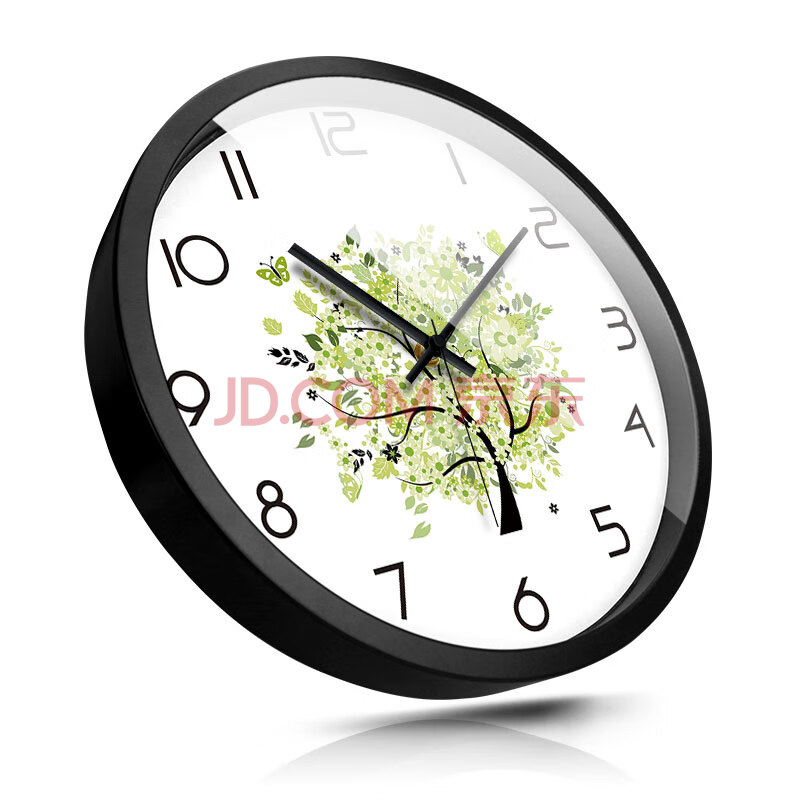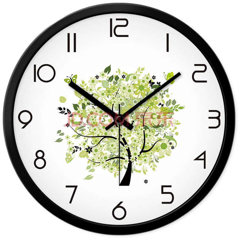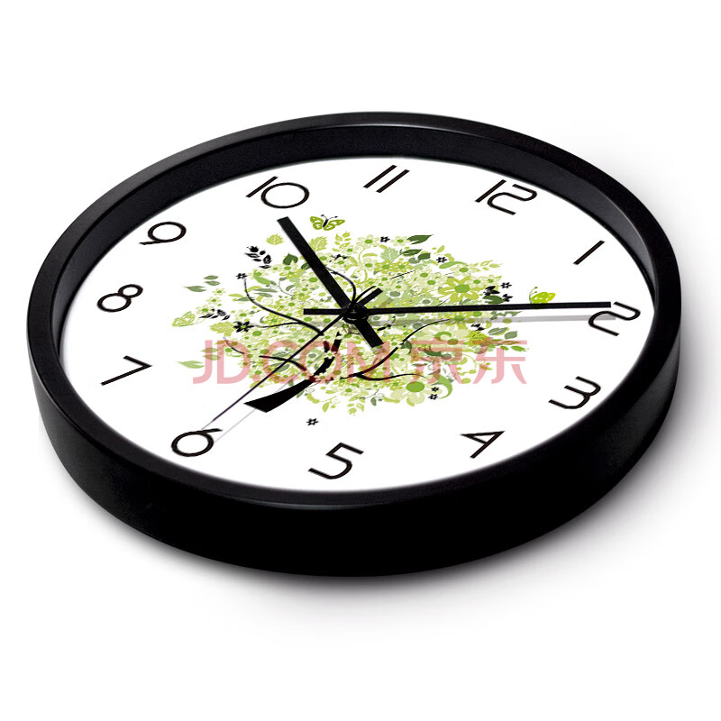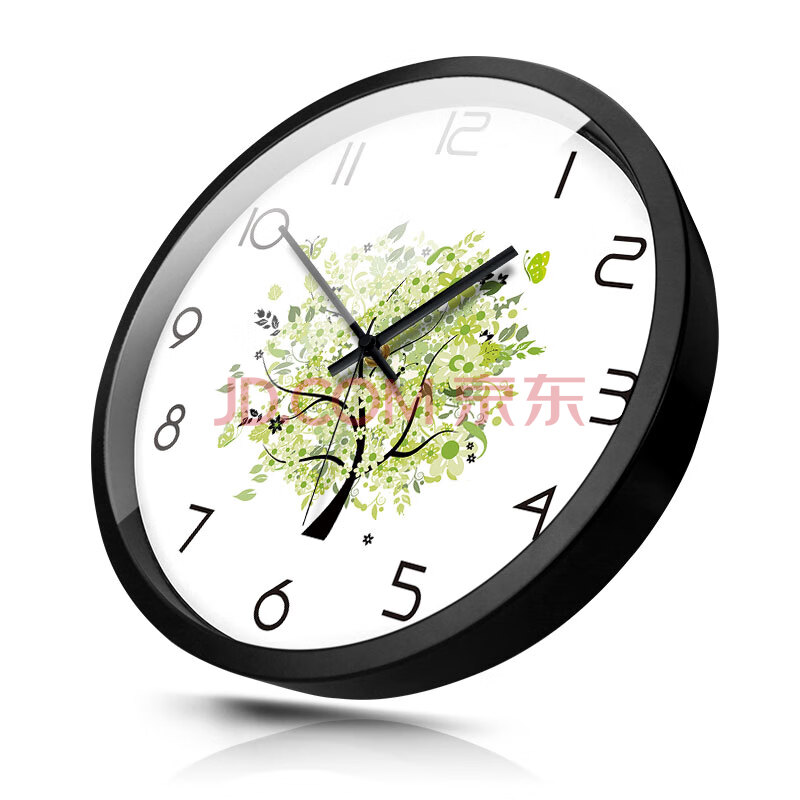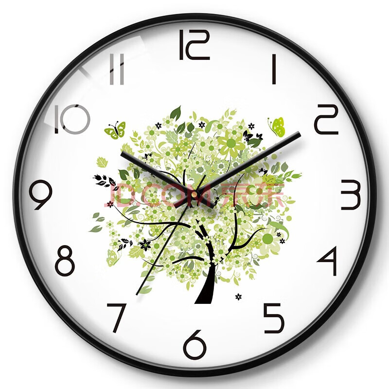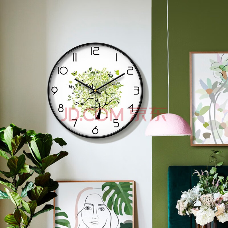 商品相册:摩门(Momen)挂钟 创意客厅金属挂钟挂表清新绿树插画现代家居装饰石英钟 30cm第