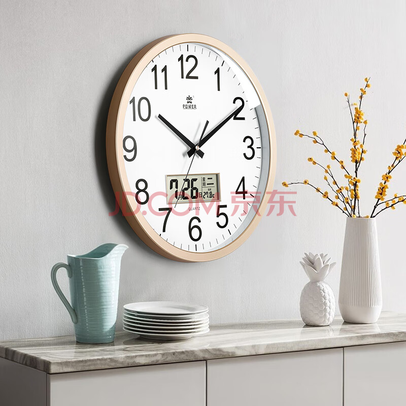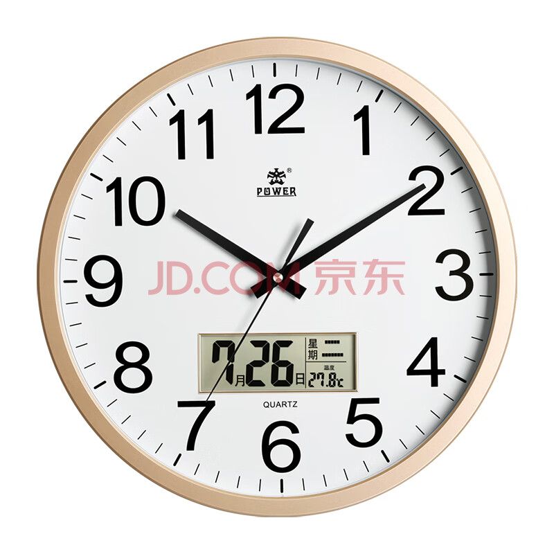 商品相册:POWER霸王钟表 客厅日历挂钟简约圆形挂表卧室石英时钟40cm金BW24006A1第