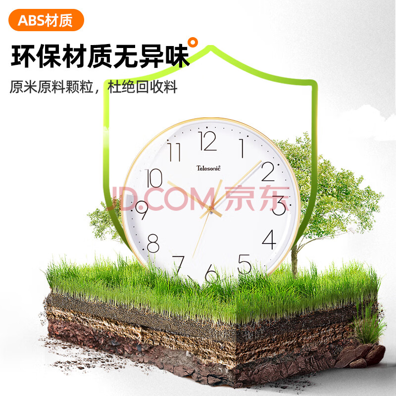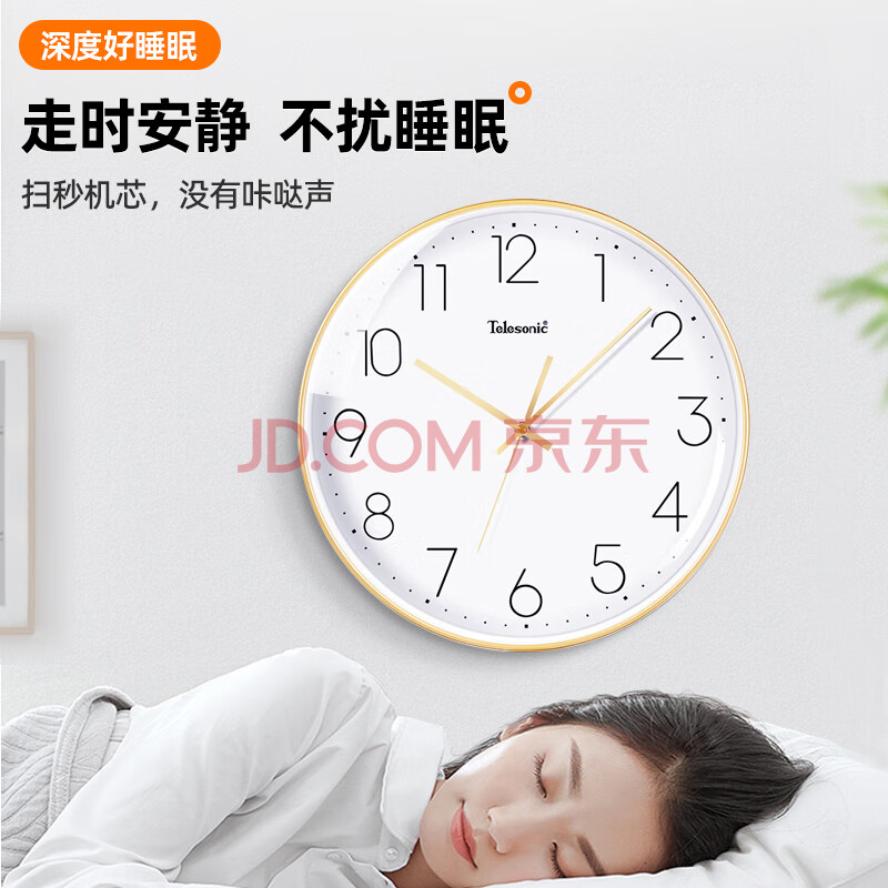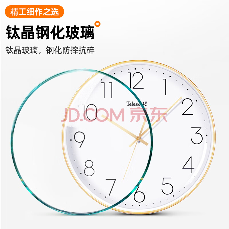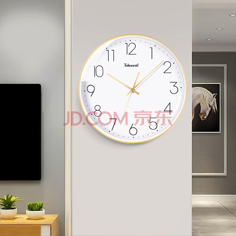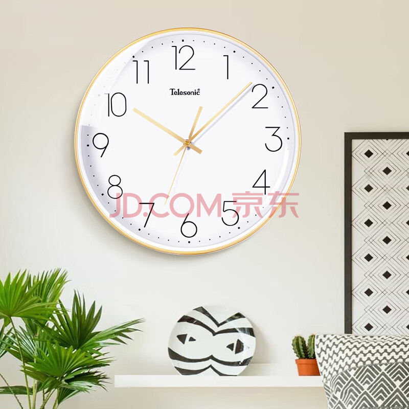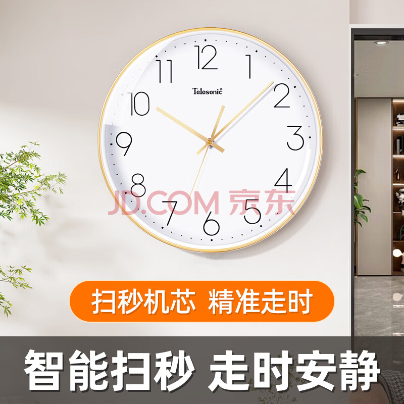 商品相册:天王星 钟表卧室挂钟客厅时钟家用大数字时尚简约挂墙表创意石英钟36cm第