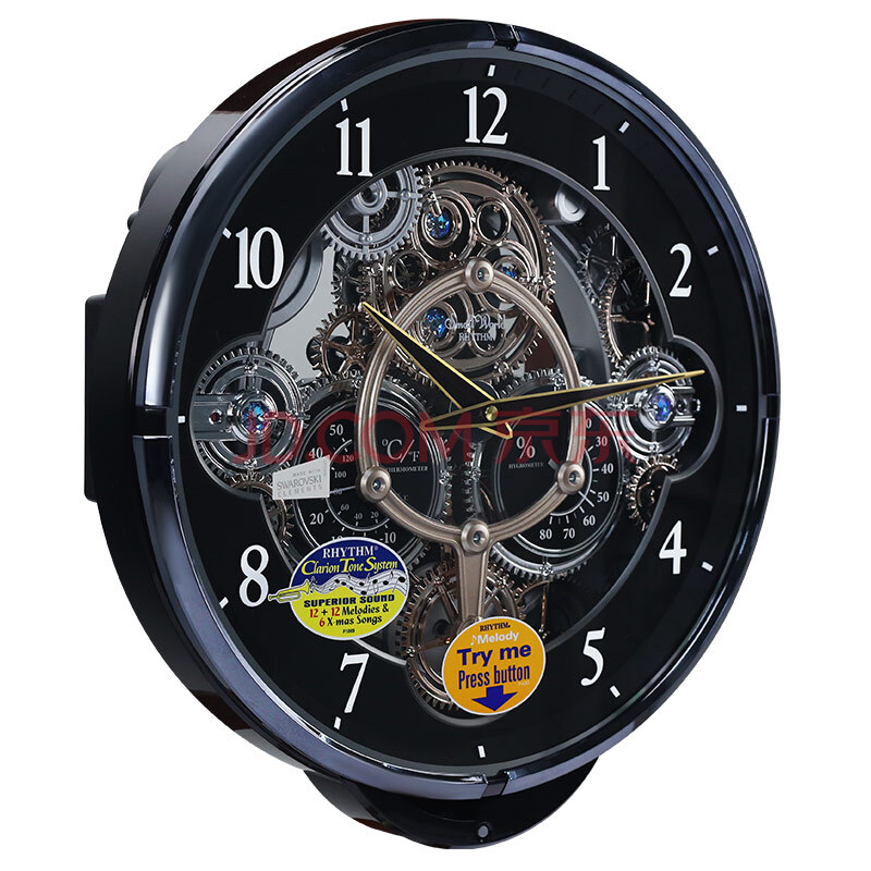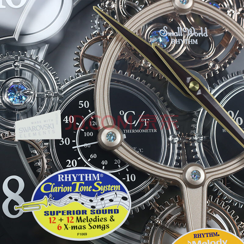 商品相册:丽声(RHYTHM)报时挂钟现代创意挂表温湿度装饰表挂墙客厅时钟41cm 4MH886WU02第