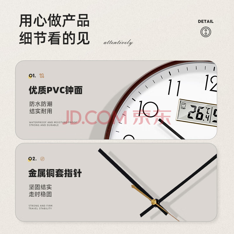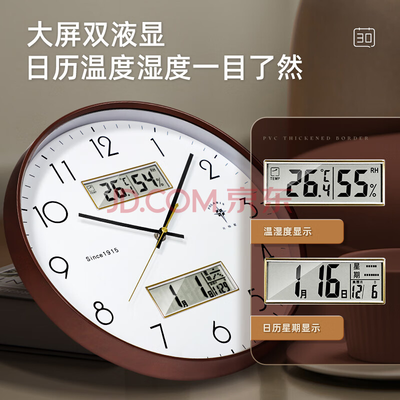 商品相册:北极星(POLARIS)挂钟客厅家用万年历挂表简约轻奢时钟挂墙钟表35cm咖色第