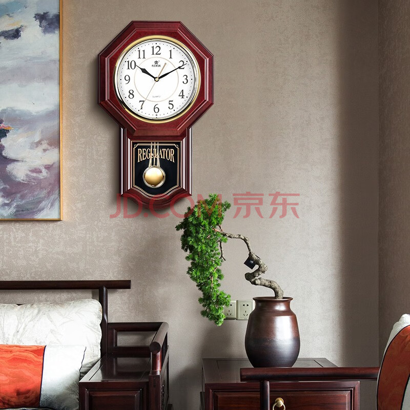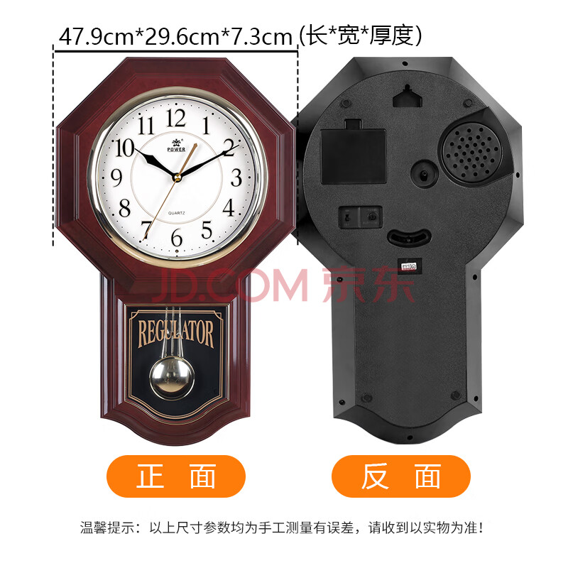 商品相册:POWER霸王挂钟表摆钟客厅时钟长48cm八卦钟整点报时音乐PW6119第