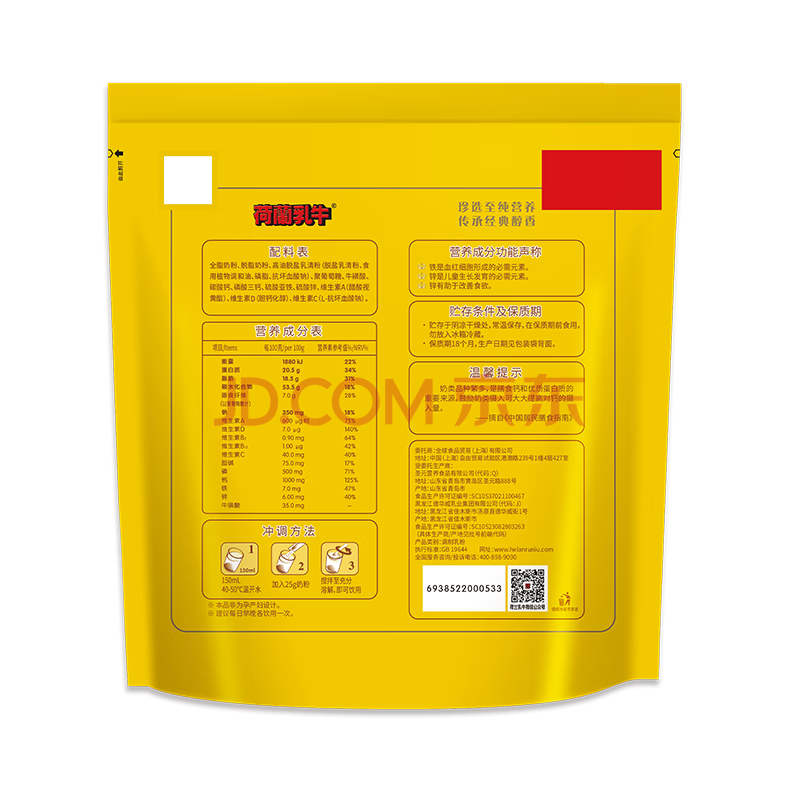 商品相册:荷兰乳牛学生营养奶粉400g(25g*16)袋 添加胆碱牛磺酸 营养早餐第