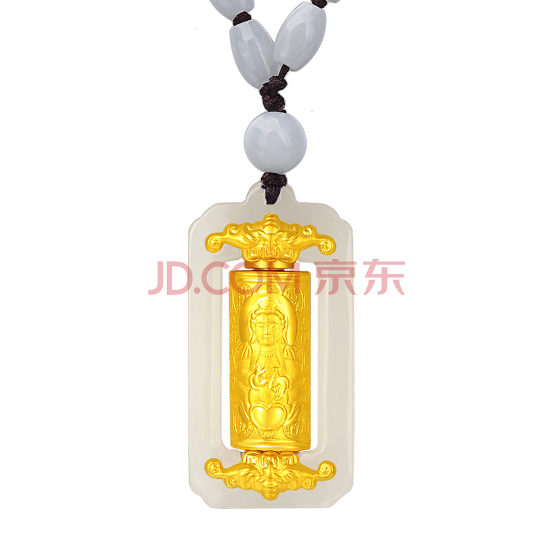 商品相册:蒂蔻(Tico)观音菩萨金镶玉吊坠翡翠项链男玉坠可转动和田玉车挂饰生日礼物第