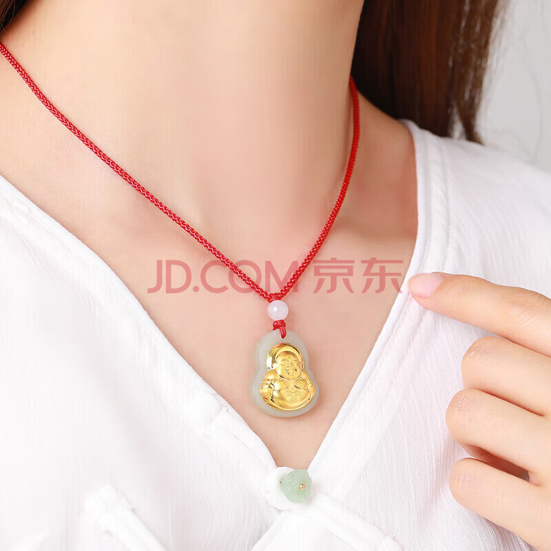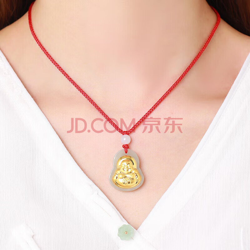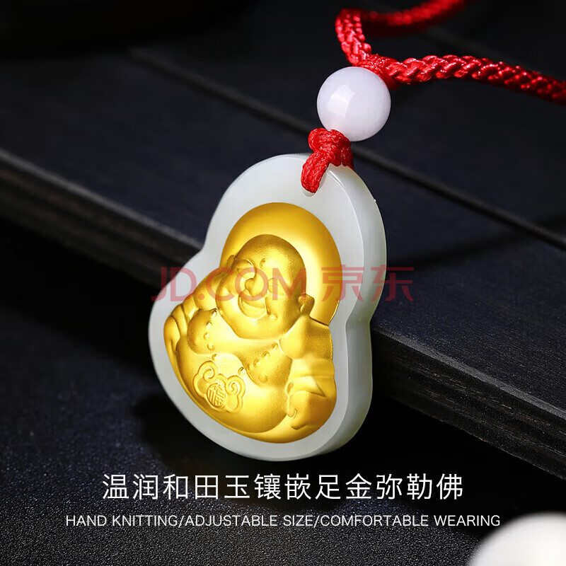 商品相册:蒂蔻(Tico)弥勒佛金镶玉吊坠项链和田玉佛公翡翠吊坠送老公爸爸生日礼物第