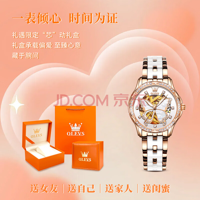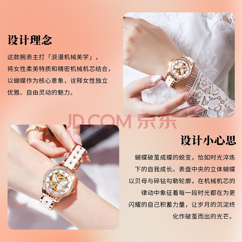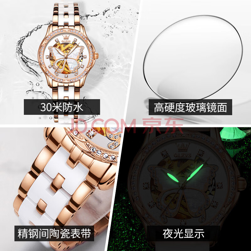 商品相册:欧利时(OLEVS)手表女款机械名表全自动瑞士认证品牌高级防水生日礼物送妈妈女友第