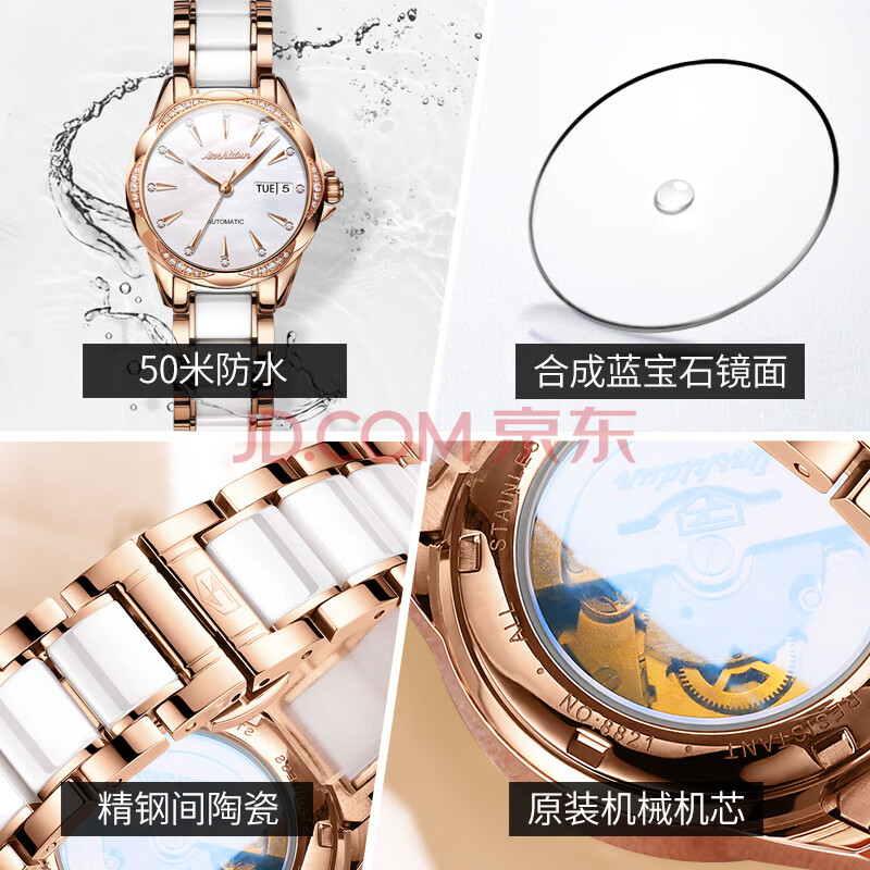 商品相册:金仕盾(JIN SHI DUN)瑞士认证品牌女士手表新款全自动机械表女生轻奢腕表送礼京东自营第