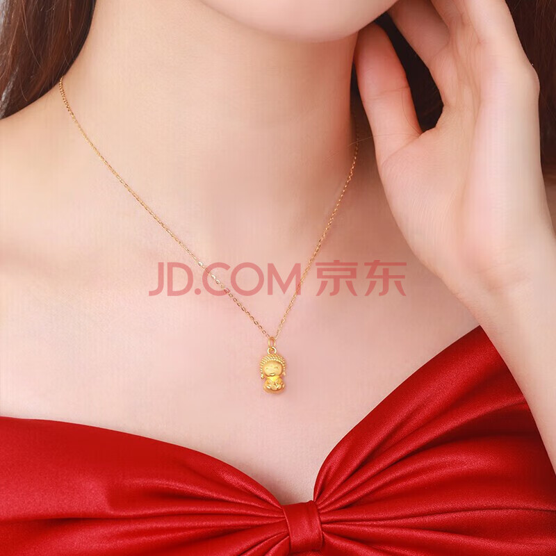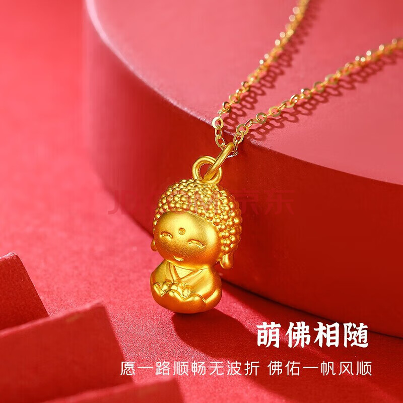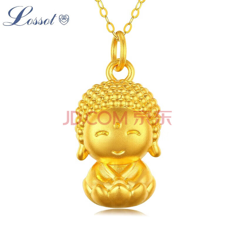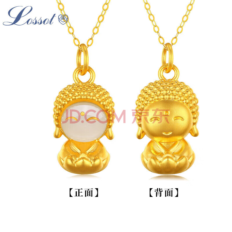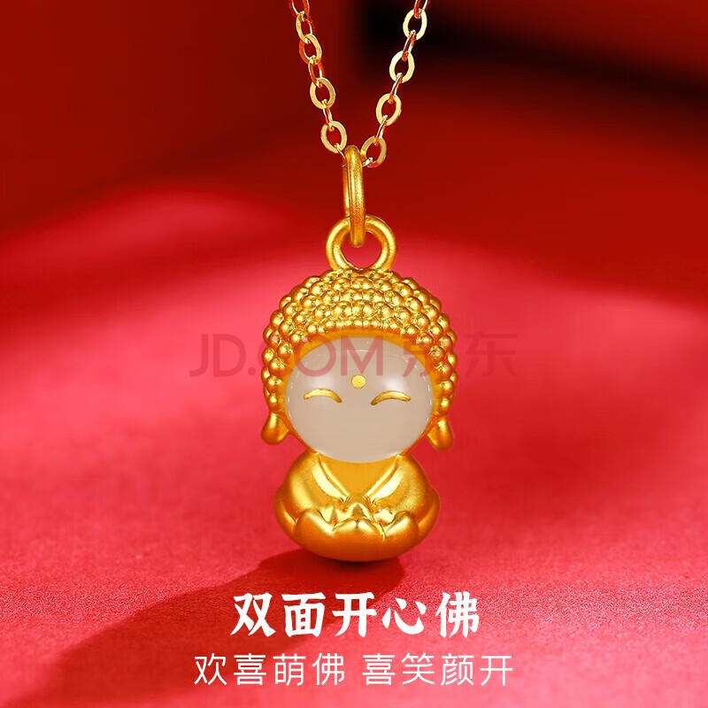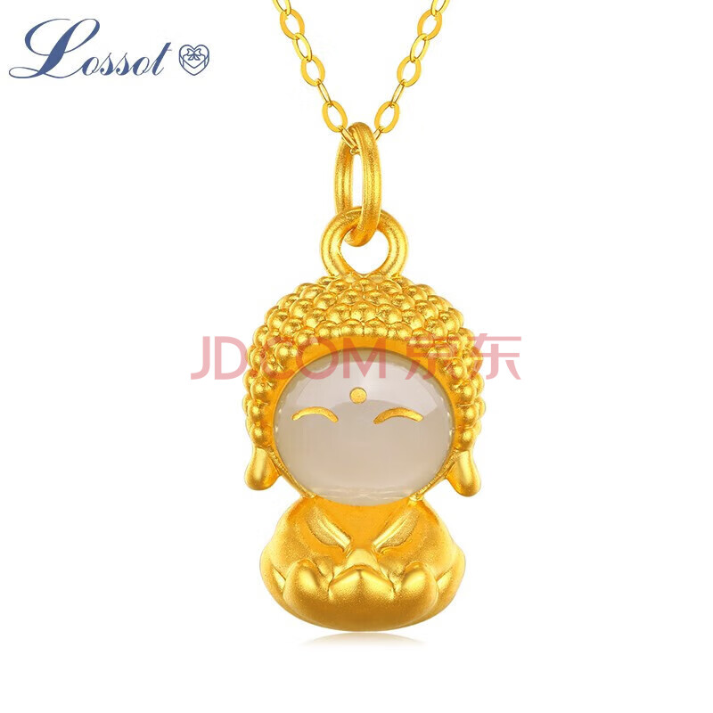 商品相册:Lossot吉祥如意足金开心佛黄金吊坠项链女金镶玉和田玉佛坠子生日礼物第